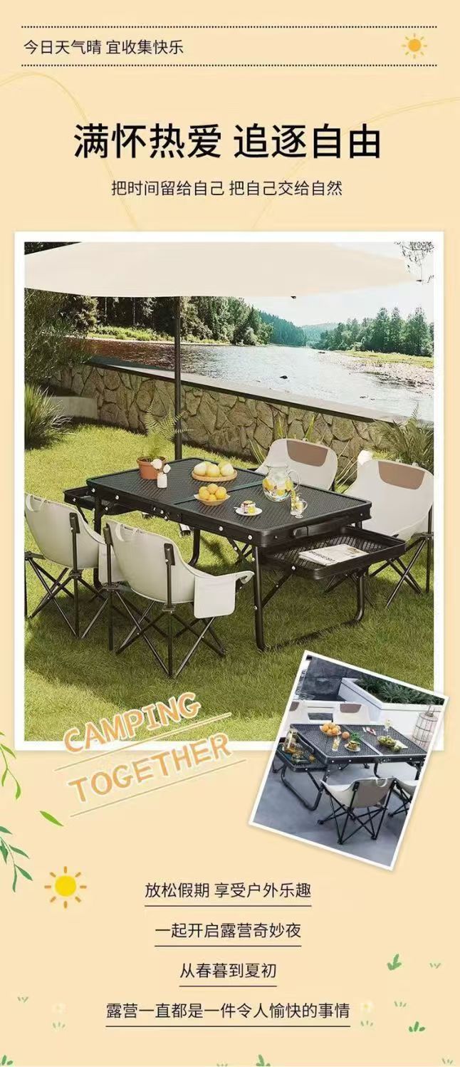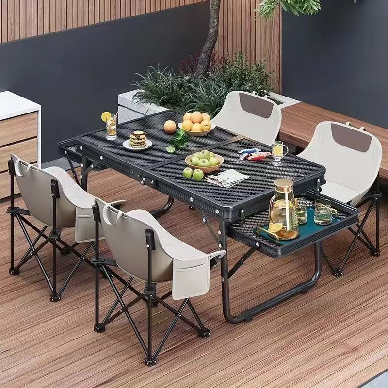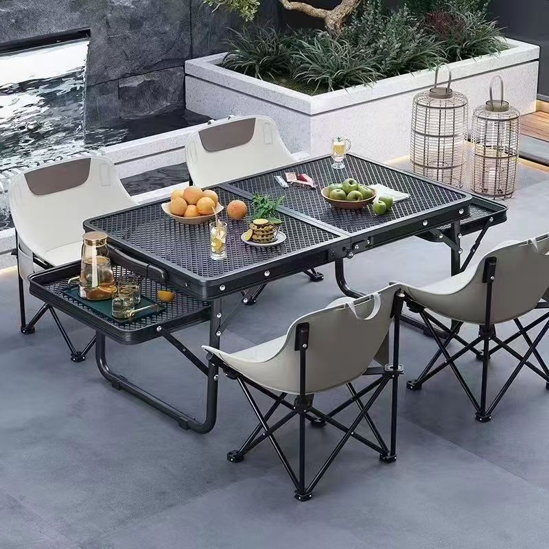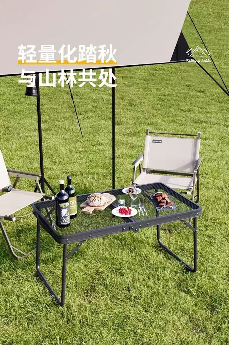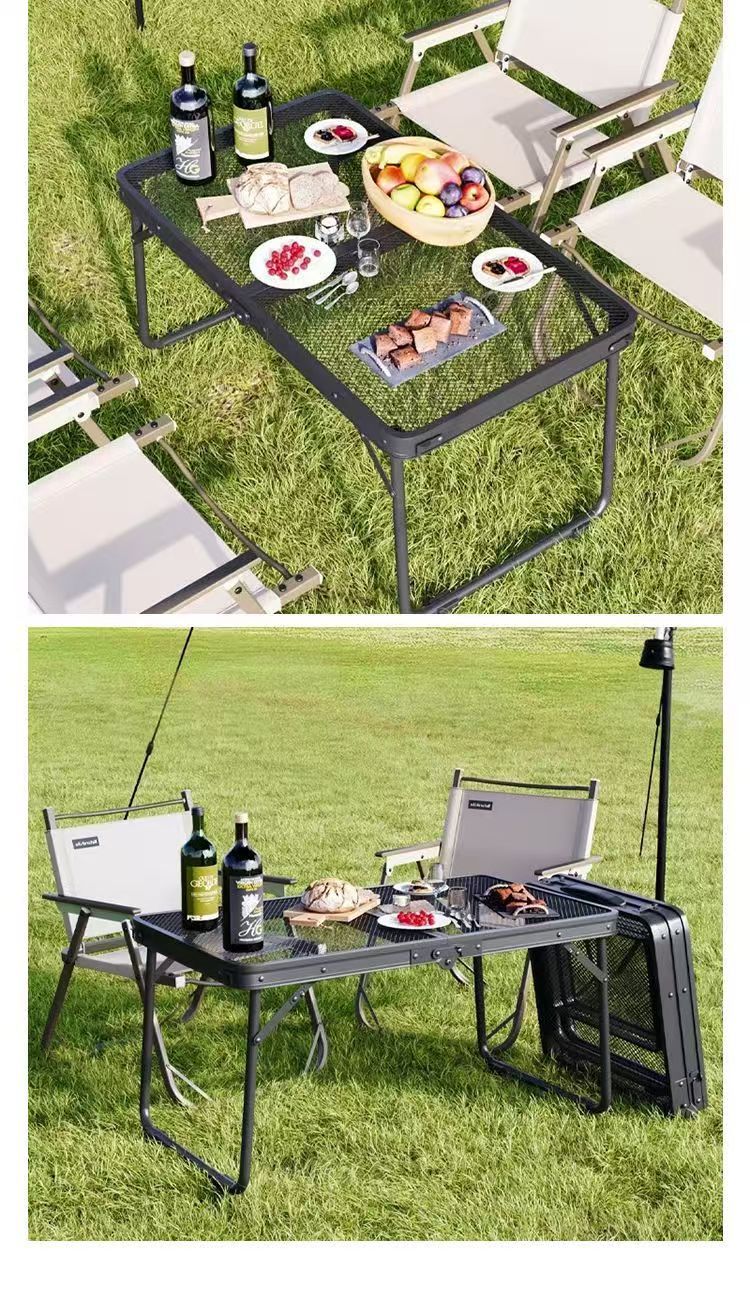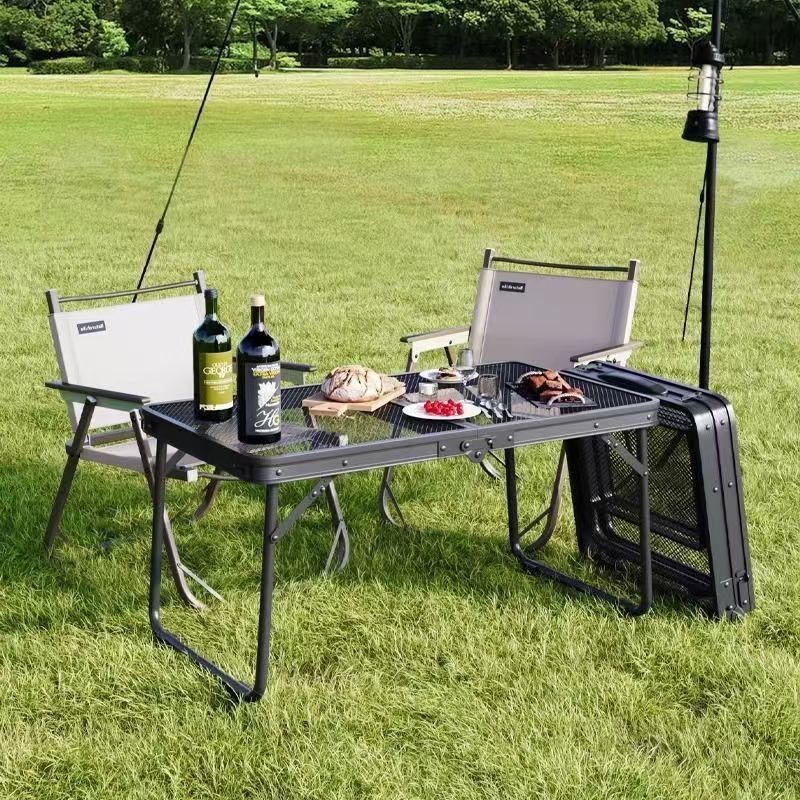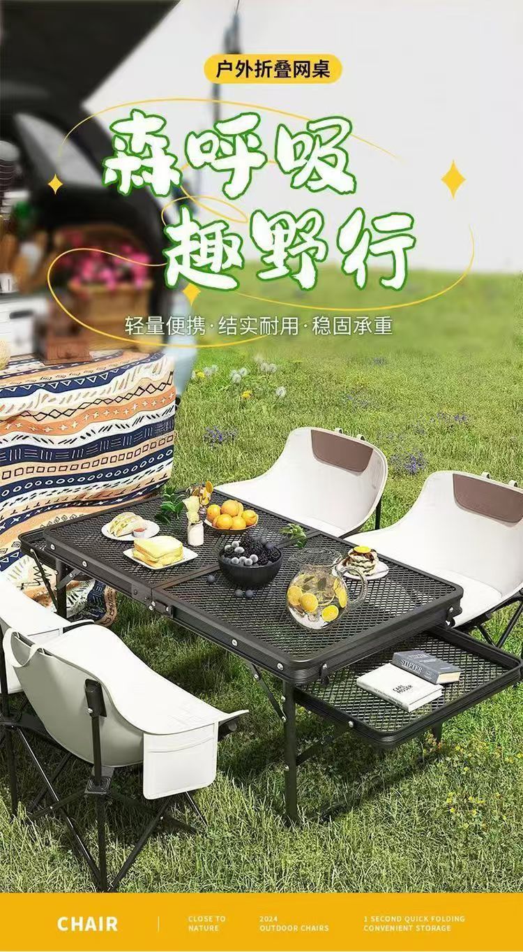 新しいタイプの屋外折り畳みテーブルと椅子キャンプのピクニックテーブルのバーベキューグリッドテーブルは折り畳み可能で携帯に便利です。