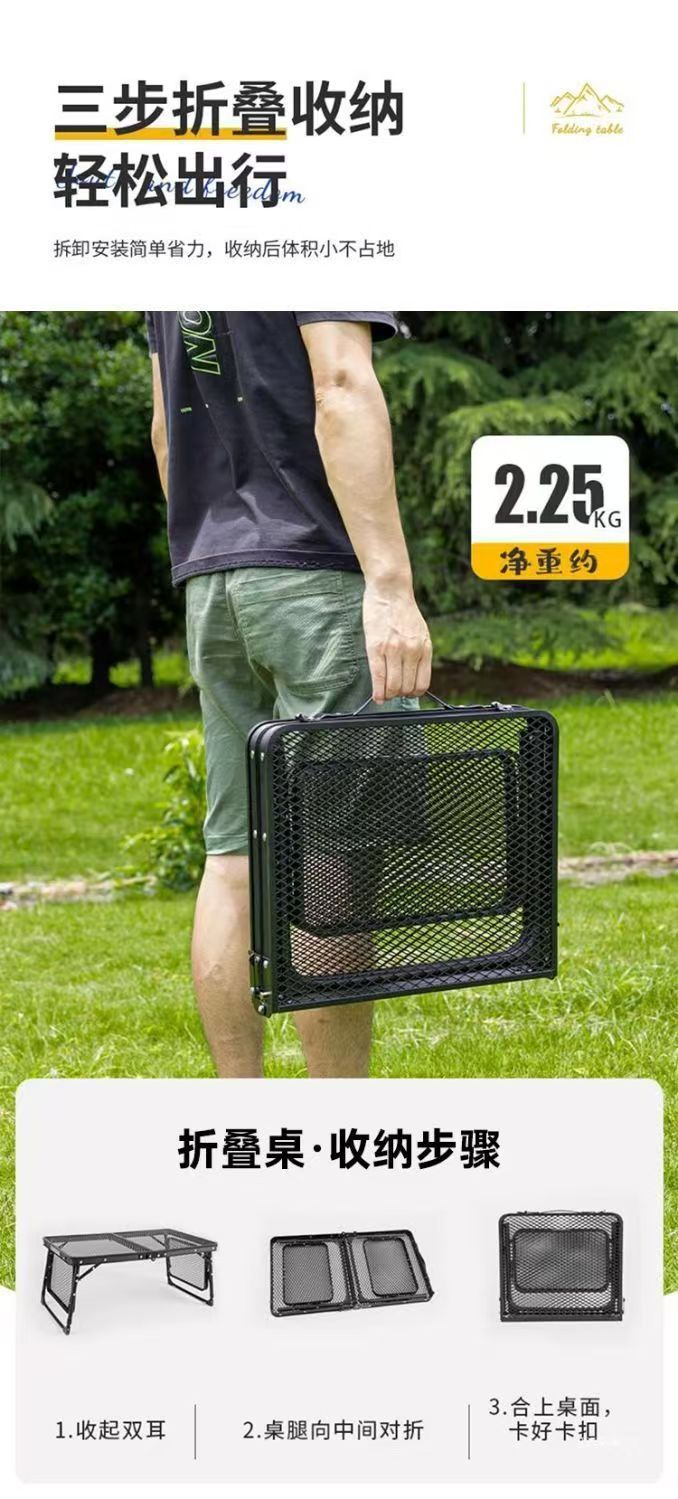 包邮 户外折叠网格桌野餐露营烧烤便携桌对折易收纳可升降网格桌