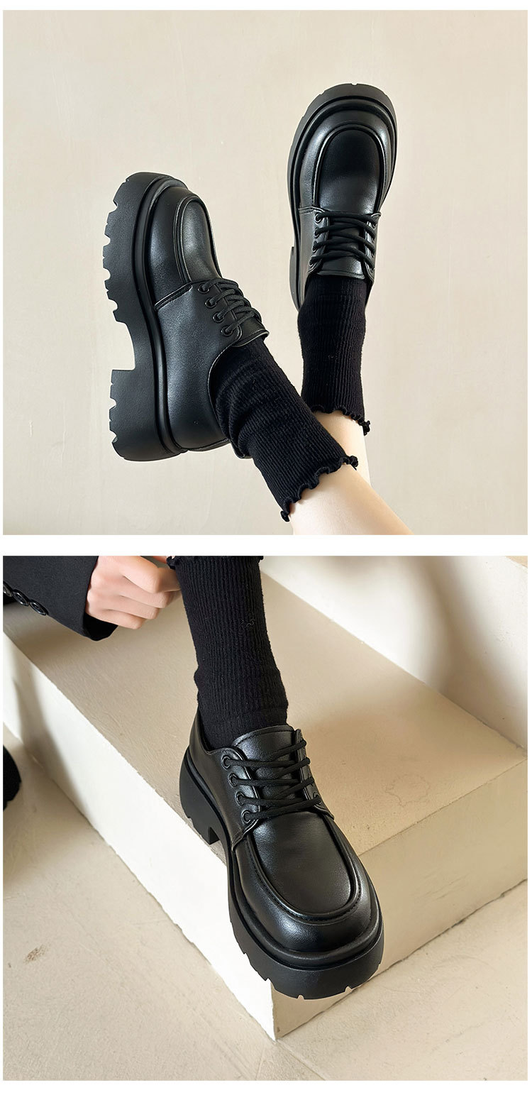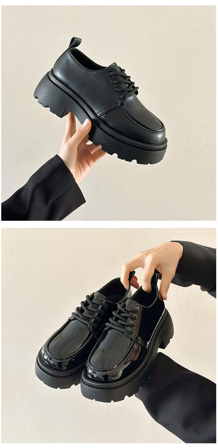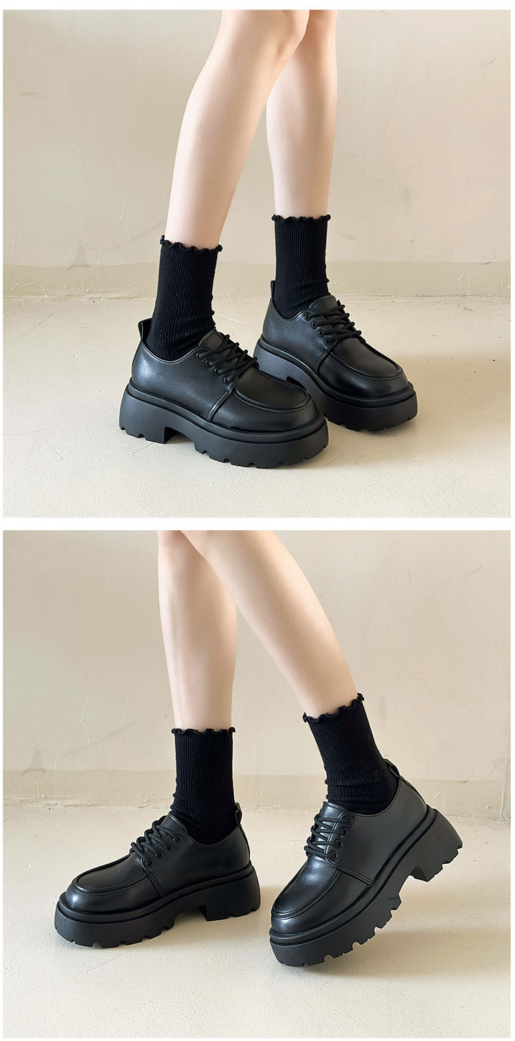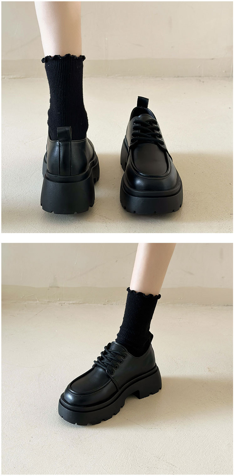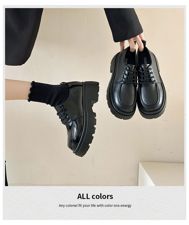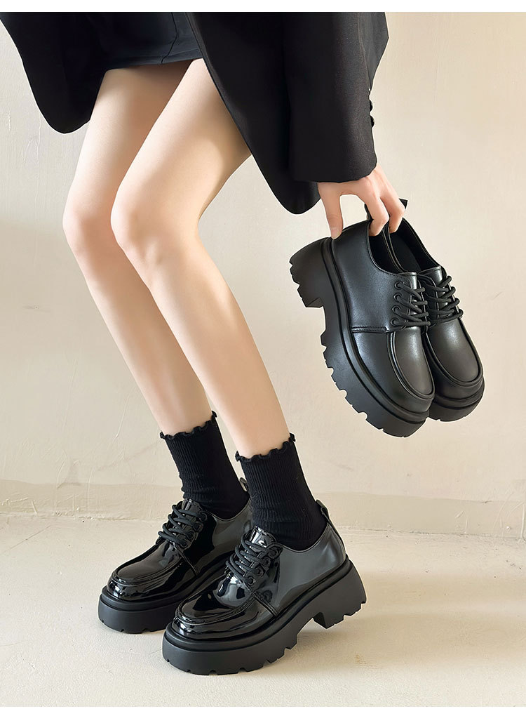 厚底レザーシューズ レディース 2025年春新作 万能 ブラック JKシューズ プラットフォーム ローファー インス風 JKスタイル