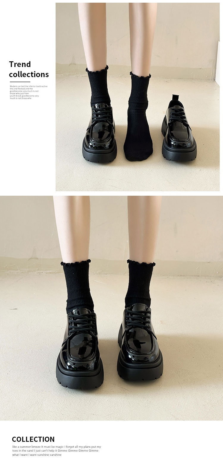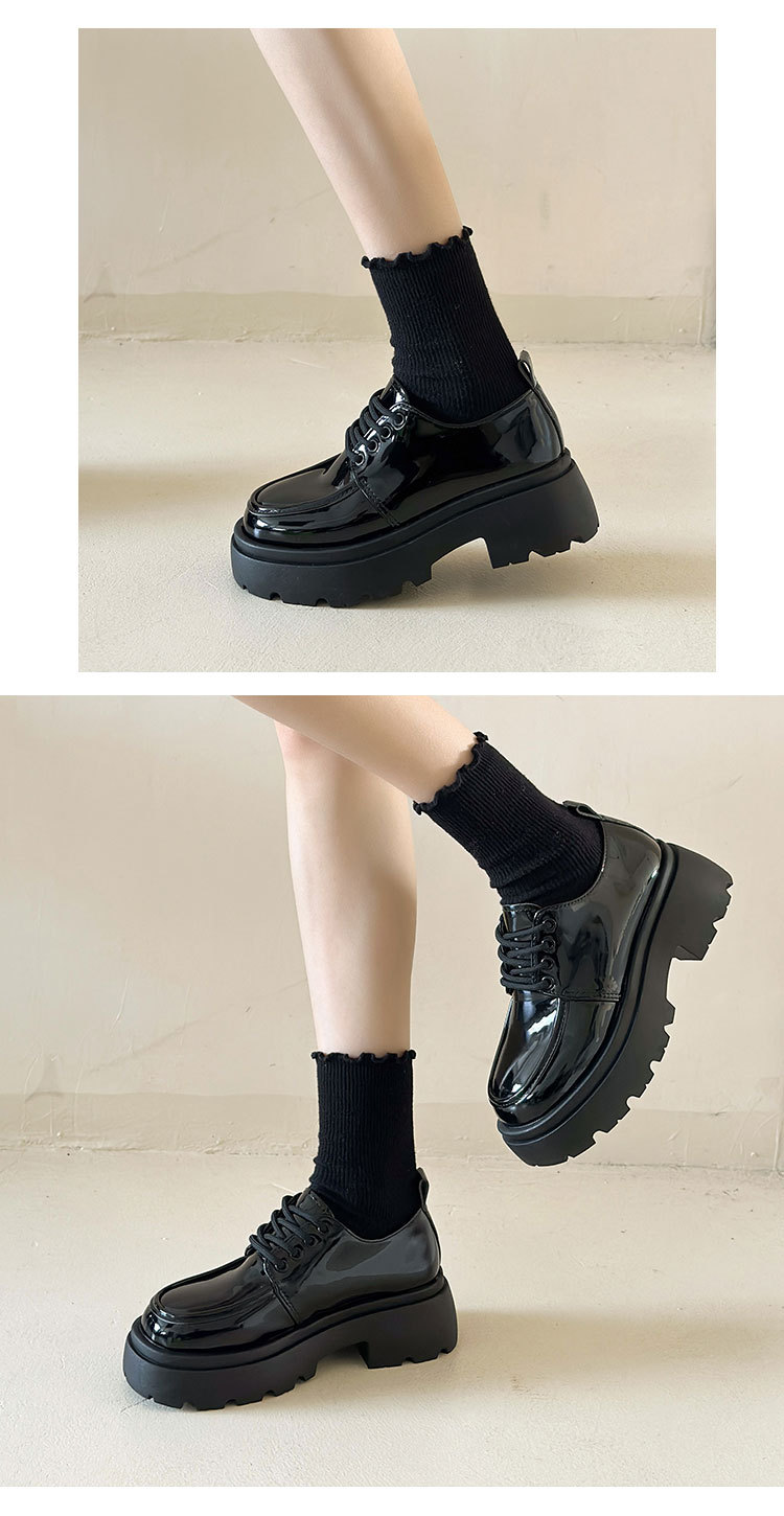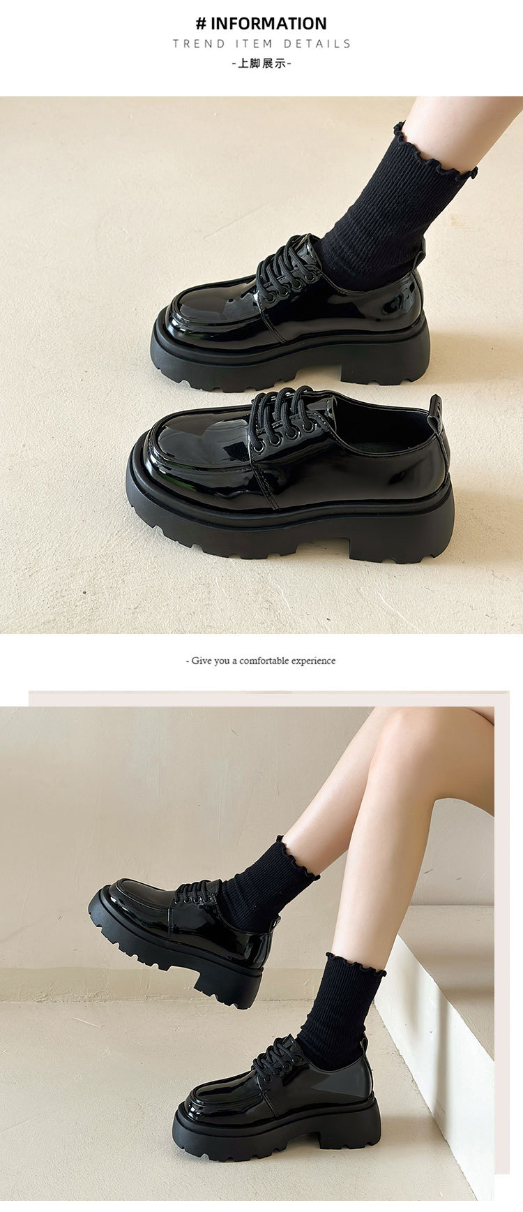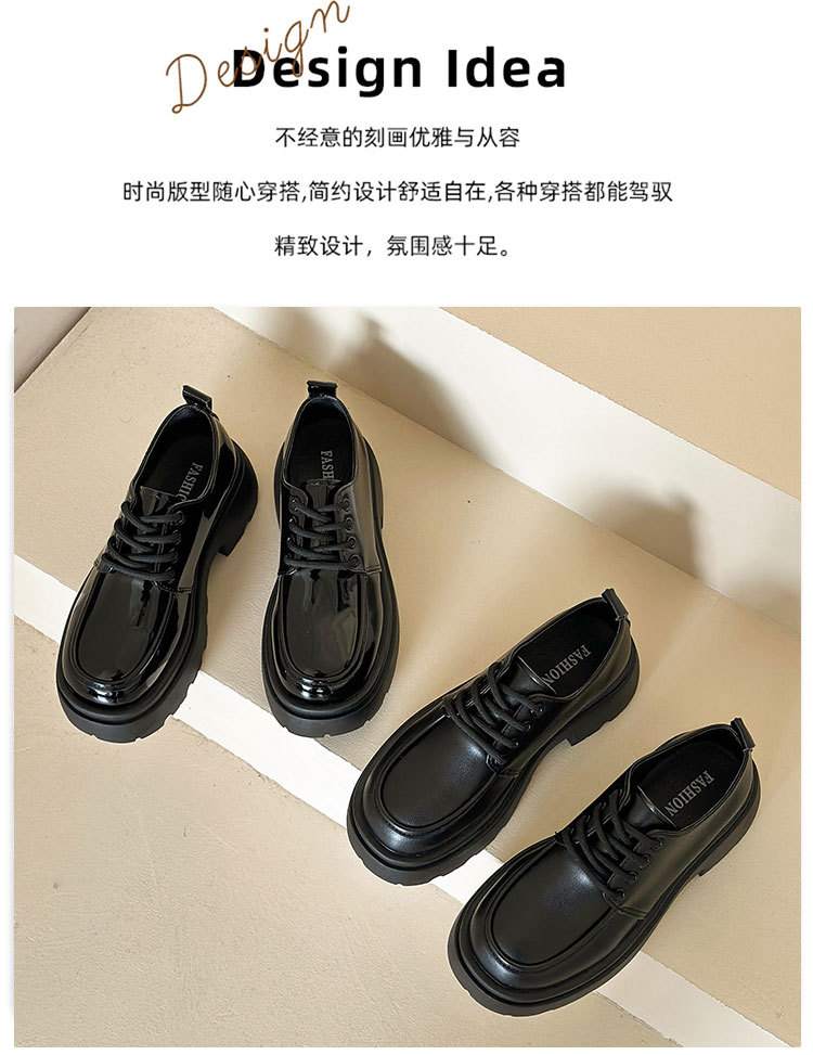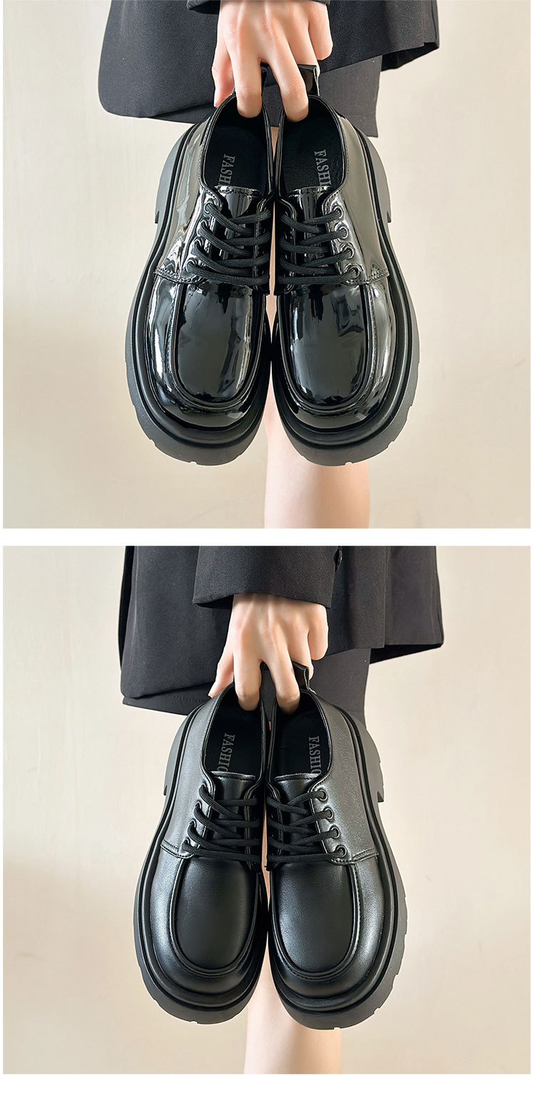 厚底レザーシューズ レディース 2025年春新作 万能 ブラック JKシューズ プラットフォーム ローファー インス風 JKスタイル