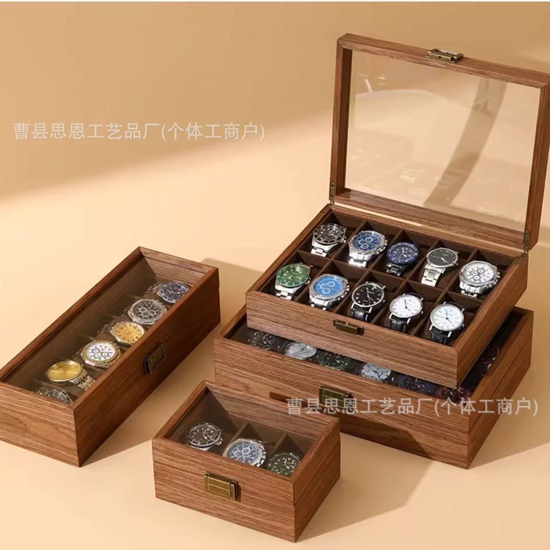 木製フリップトップ時計収納ボックス無垢材透明リストバンドディスプレイボックス透明アクリル時計コレクションボックス