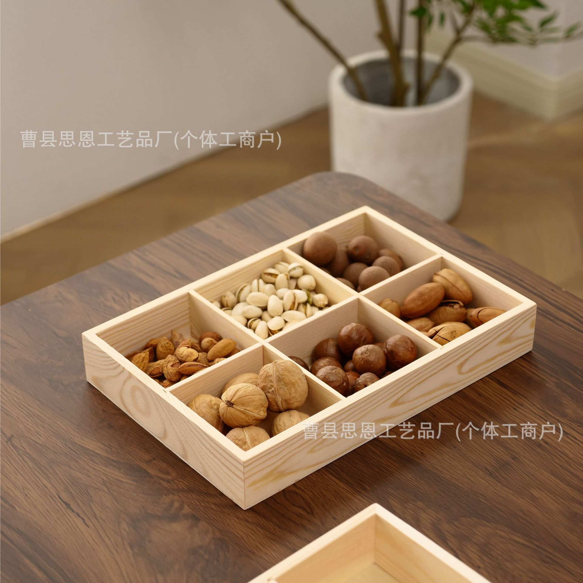 竹製多格ドライフルーツ菓子箱結婚喜糖収納箱家庭用デスクトップ角型ナッツ小食箱