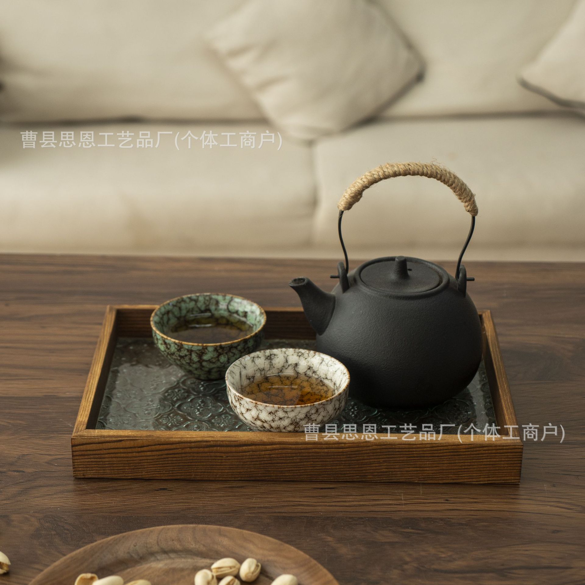 木製ストーブティースナックプレートオフィスデスクティープレート無垢材ガラスフルーツスナックプレート