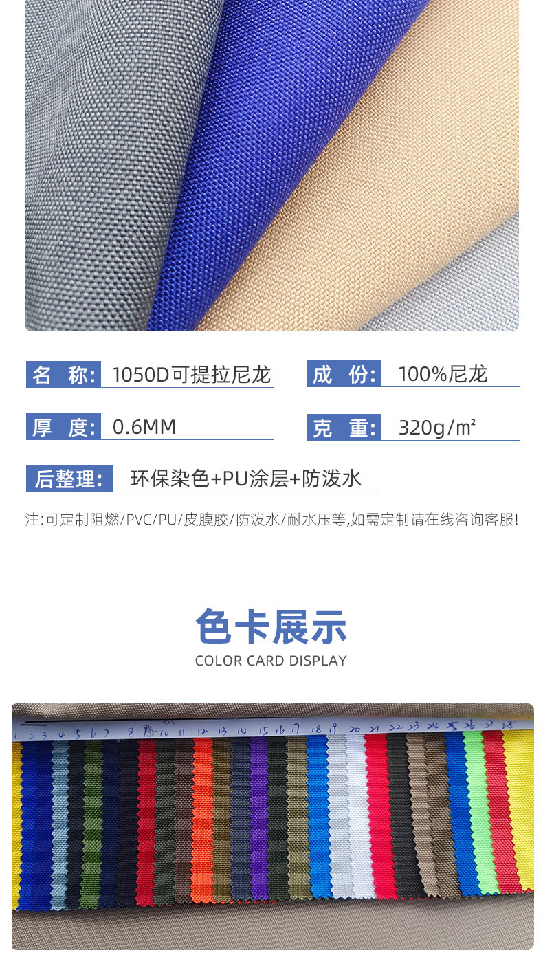 スポット 1050D 引き出し可能なナイロン PU 防水、環境に優しい、耐摩耗性の荷物、靴、ペット用品、ナイロン生地