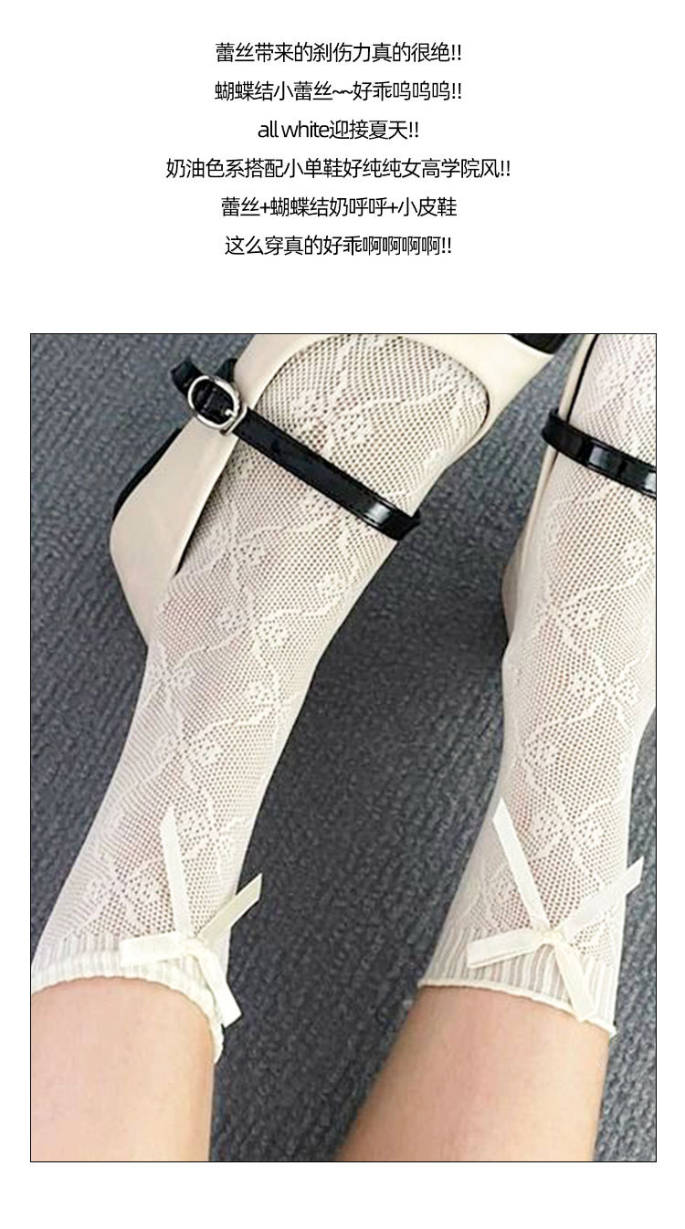 JKソックス 夏用薄手ストッキング ロリータ風 インスタ映え メッシュ通気性 日本風 可愛いレースソックス