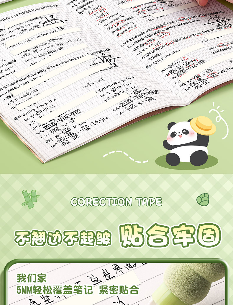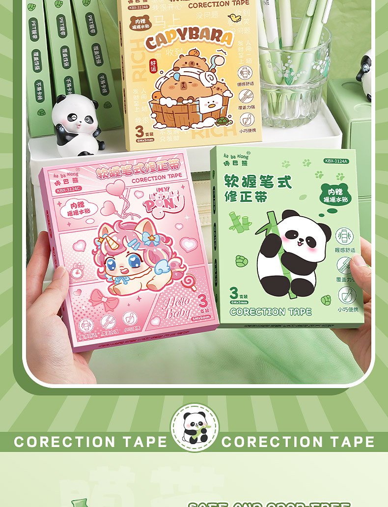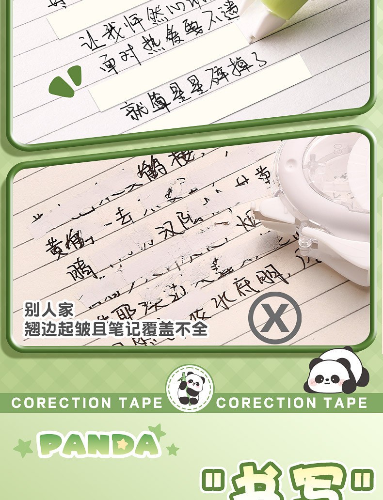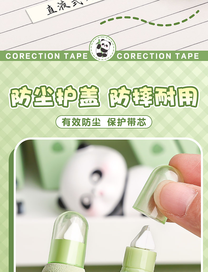 小学生向けパンダペン修正テープ、見た目の良い中学生女子向け、大容量ペン修正テープ、携帯用