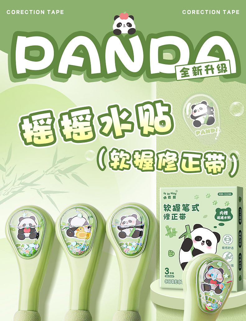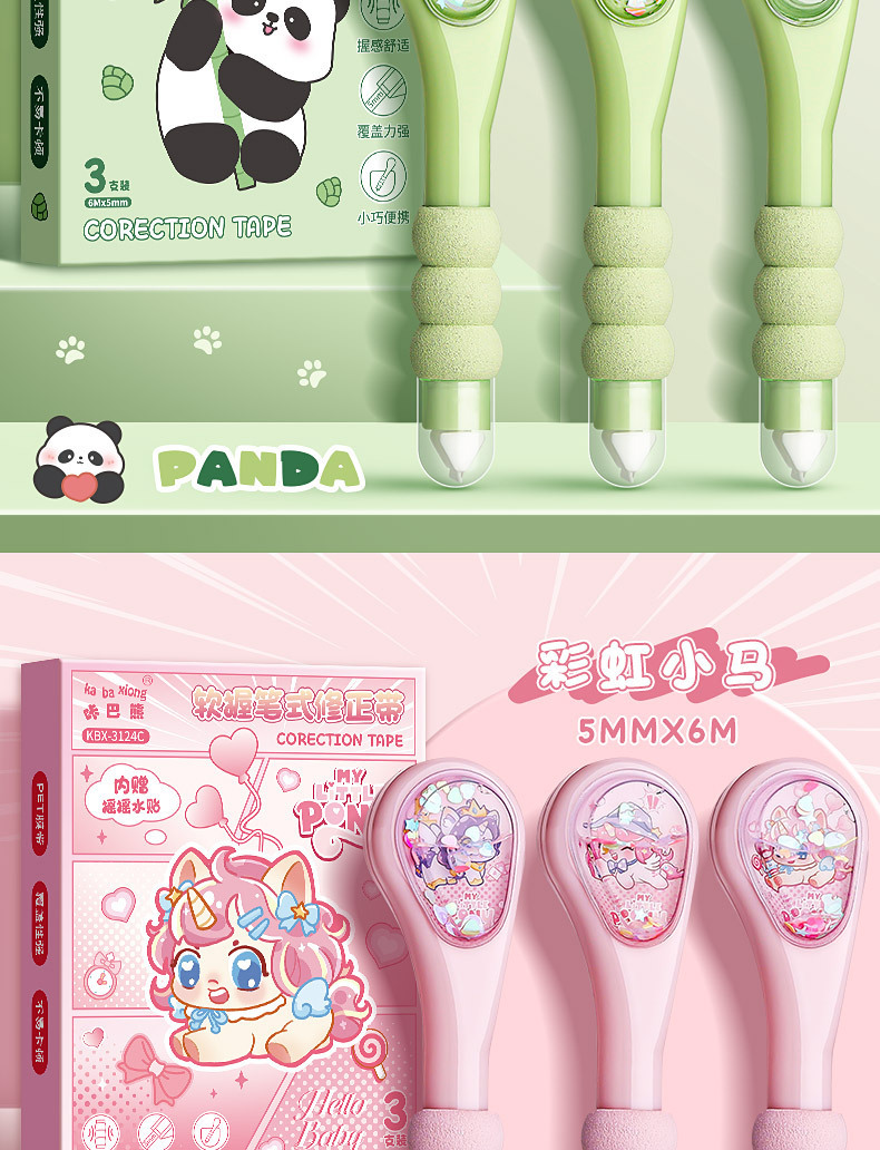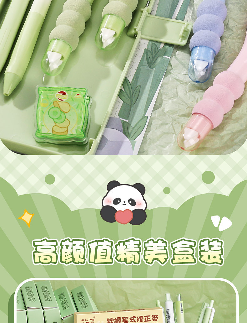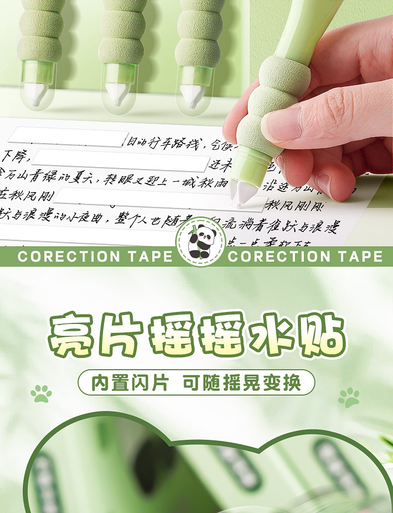 小学生向けパンダペン修正テープ、見た目の良い中学生女子向け、大容量ペン修正テープ、携帯用