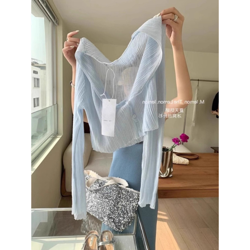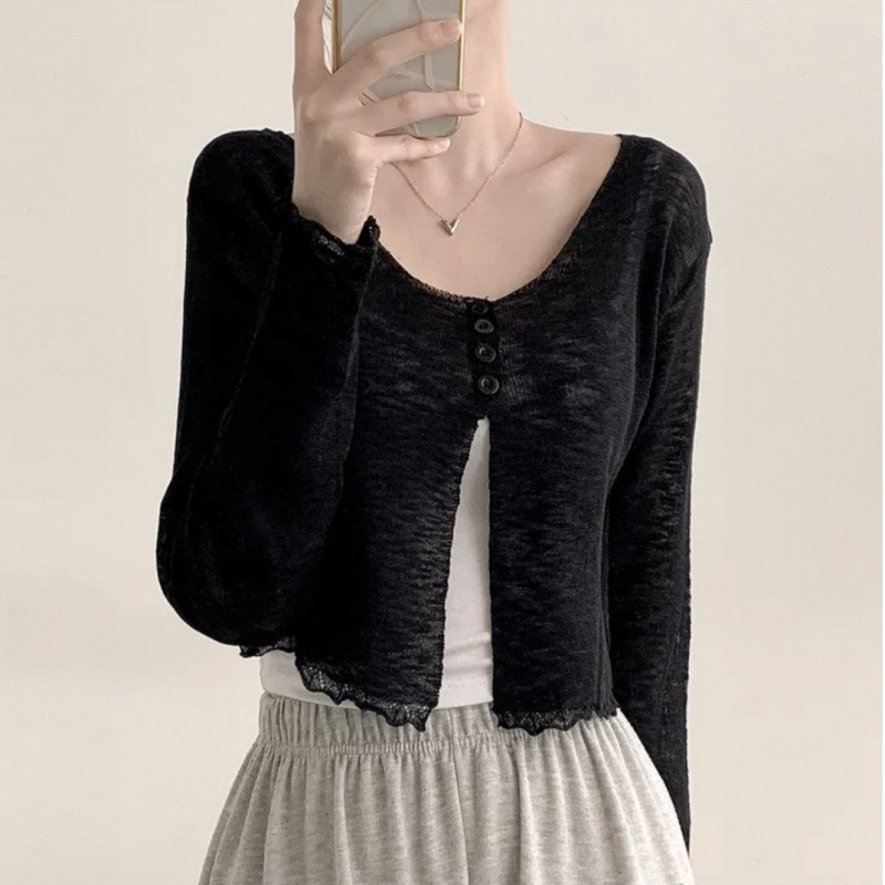 韓国のアイスニットの長袖の日焼け止めのシャツの新型の外はエアコンのブラウスのギャルの短い上着を掛けます。