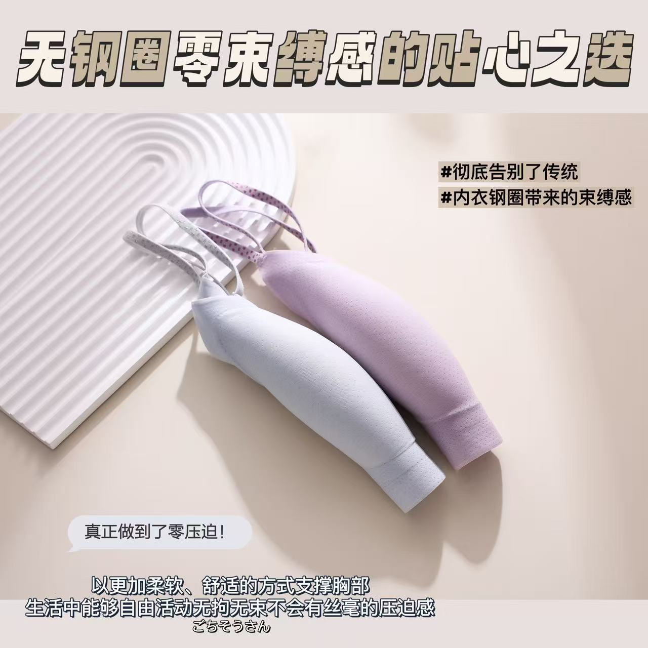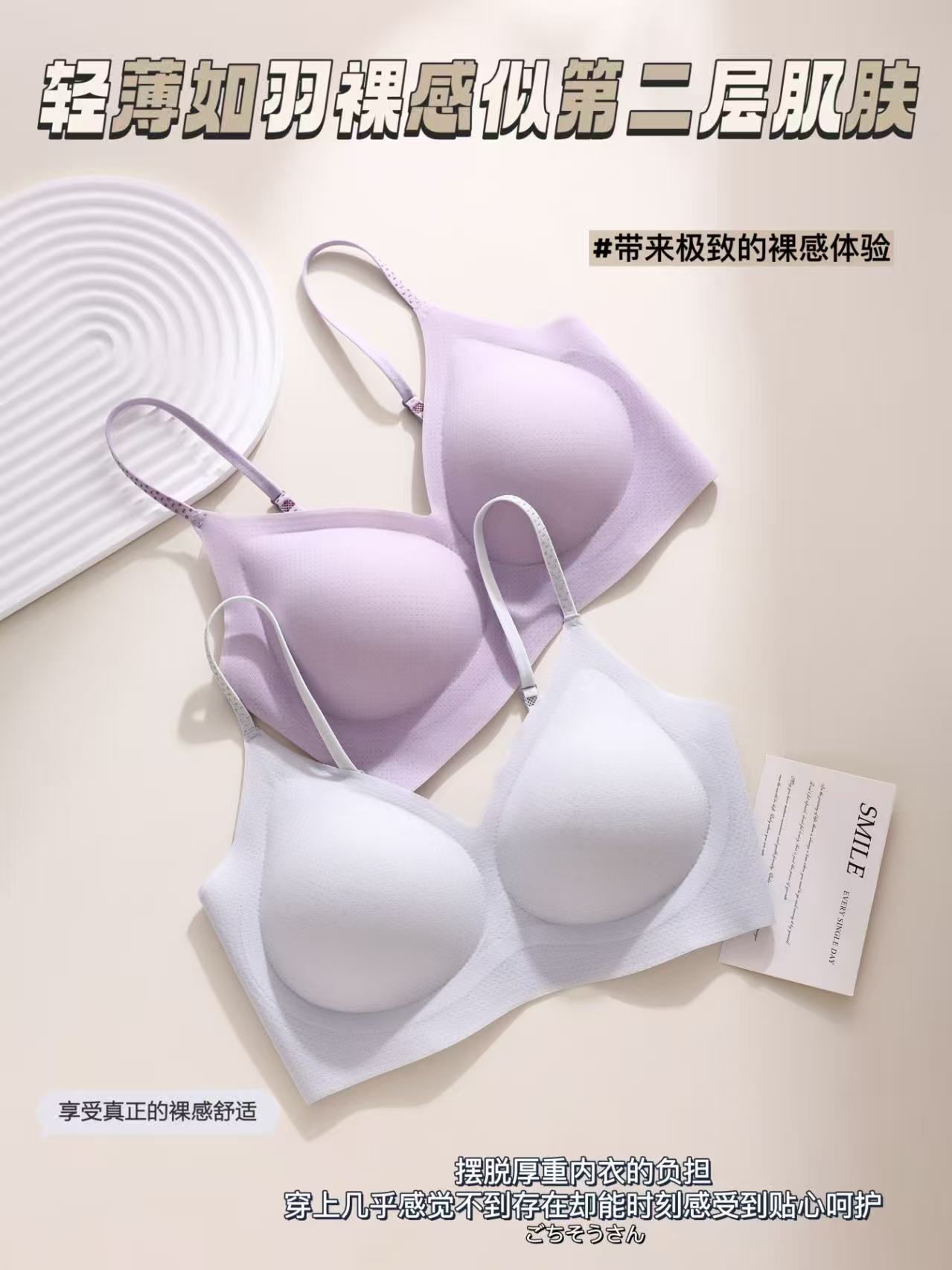 2023夏の超薄氷糸無痕下着女性の薄いタイプの通気性の大きい胸は小さいガーターの美背睡眠のブラジャーです。
