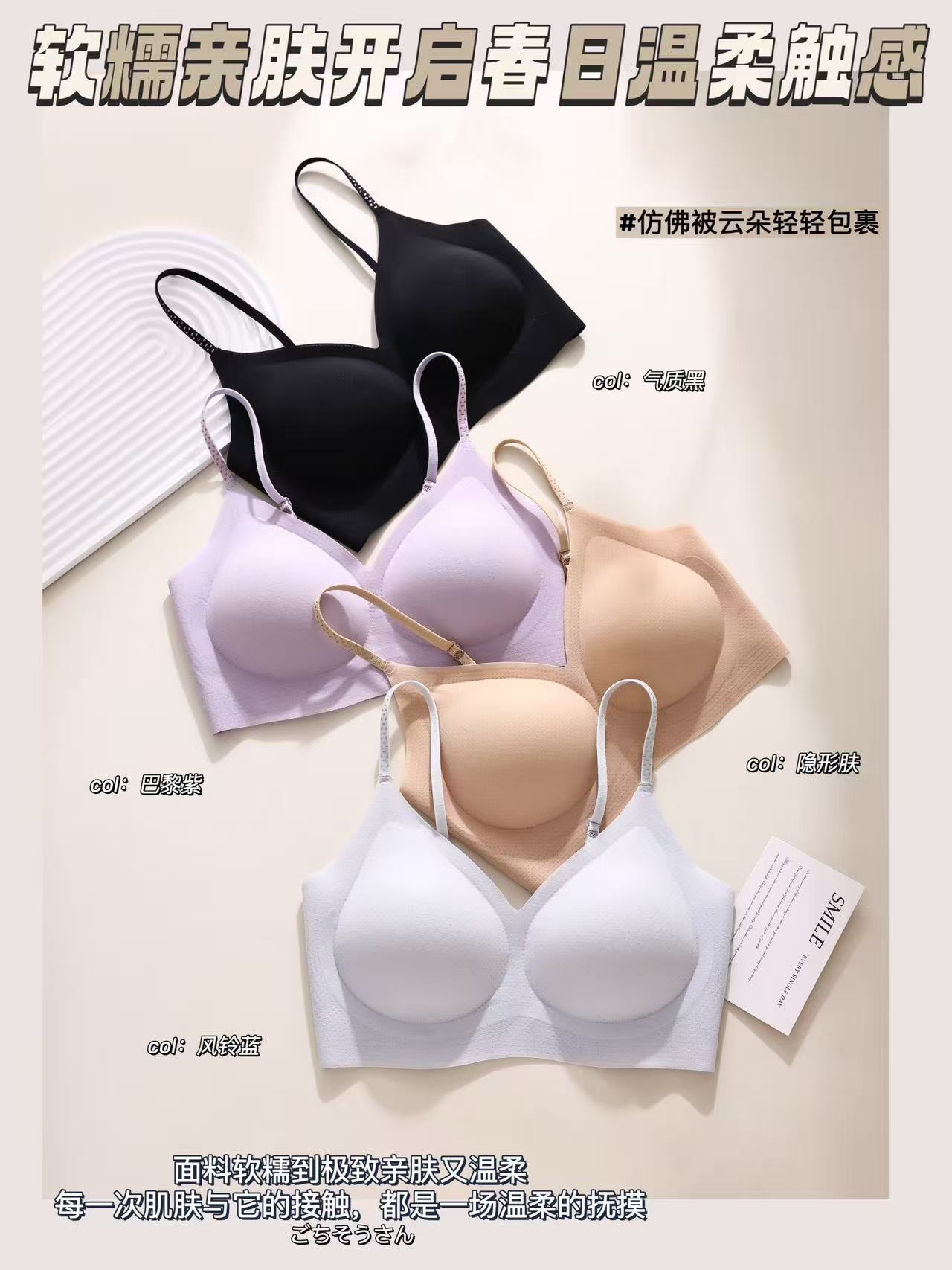 超音波親酸素 38 ベストスタイルアイスシルクシームレス下着女性ヌード感覚プッシュアップ固定カップスリープブラジャー女性
