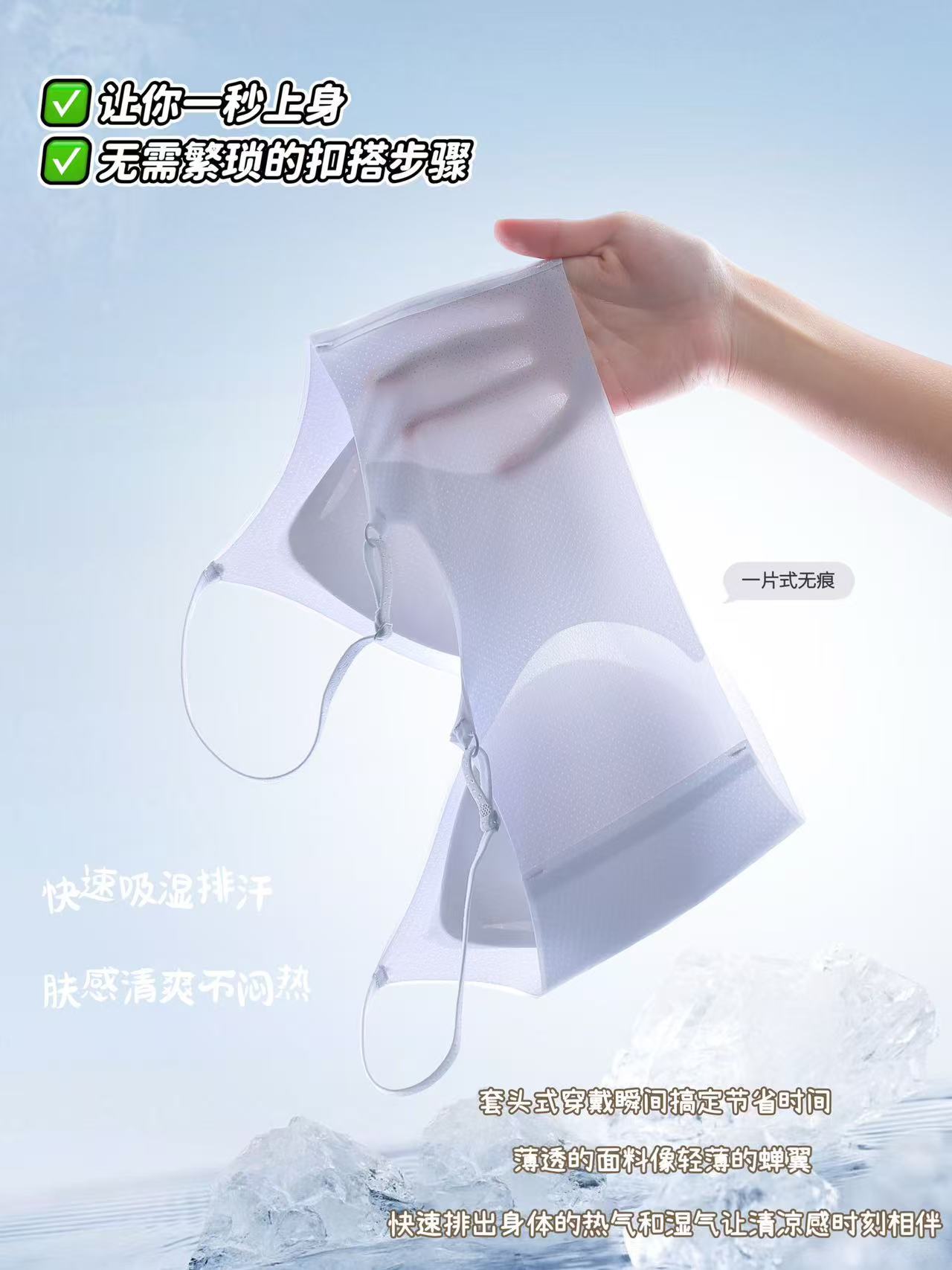 夏の超薄氷糸無痕下着女性の薄いタイプの通気性の一枚式の美背ベストの大きい胸は小さい睡眠のブラジャーを現します。