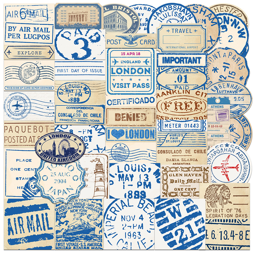 50枚の小清新風旅行チケットの落書きシールがスーツケースの携帯ケースのノートパソコンを飾っています。
