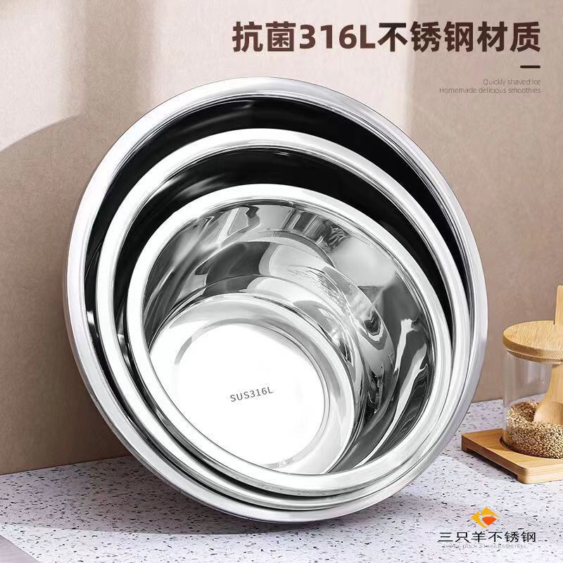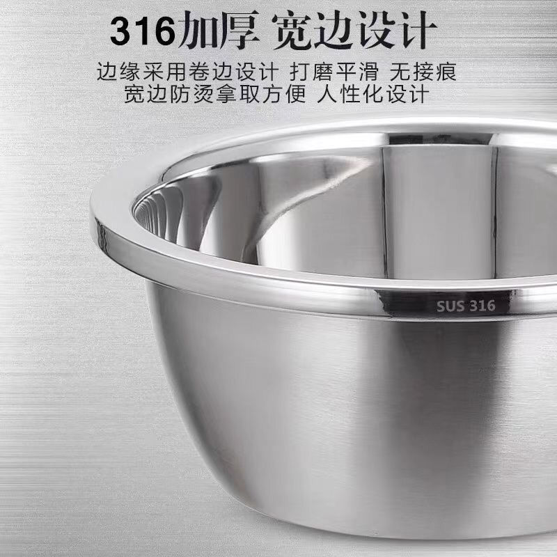 316不锈钢盆食品级加厚加深圆形家用商用汤盆菜盆脸盆和面盆调料