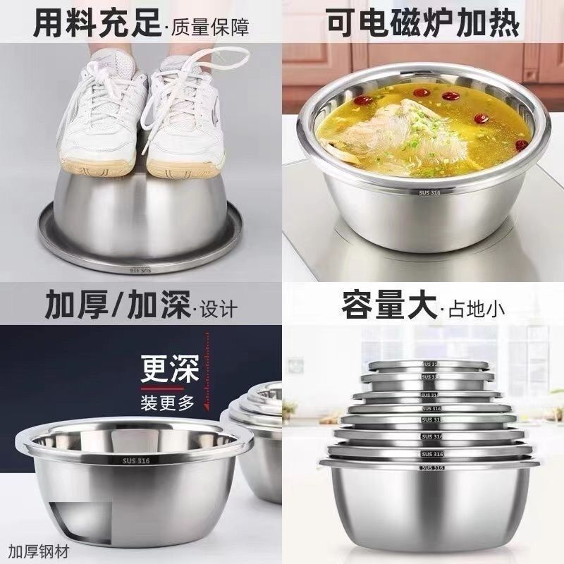 316食品级不锈钢盆家用厨房打蛋和面盆洗菜烘焙凉拌沙拉特厚汤盆