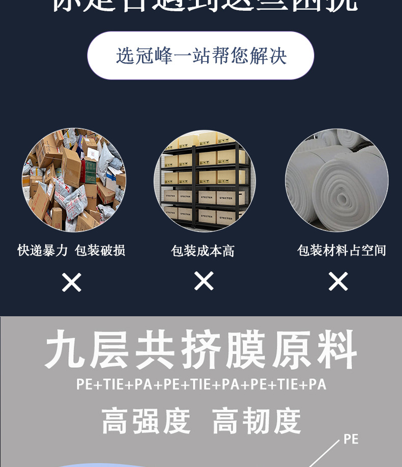 冠峰気柱袋空気充填気柱巻材気泡柱速達緩衝包装袋厚手エアバッグ気柱袋卸売り