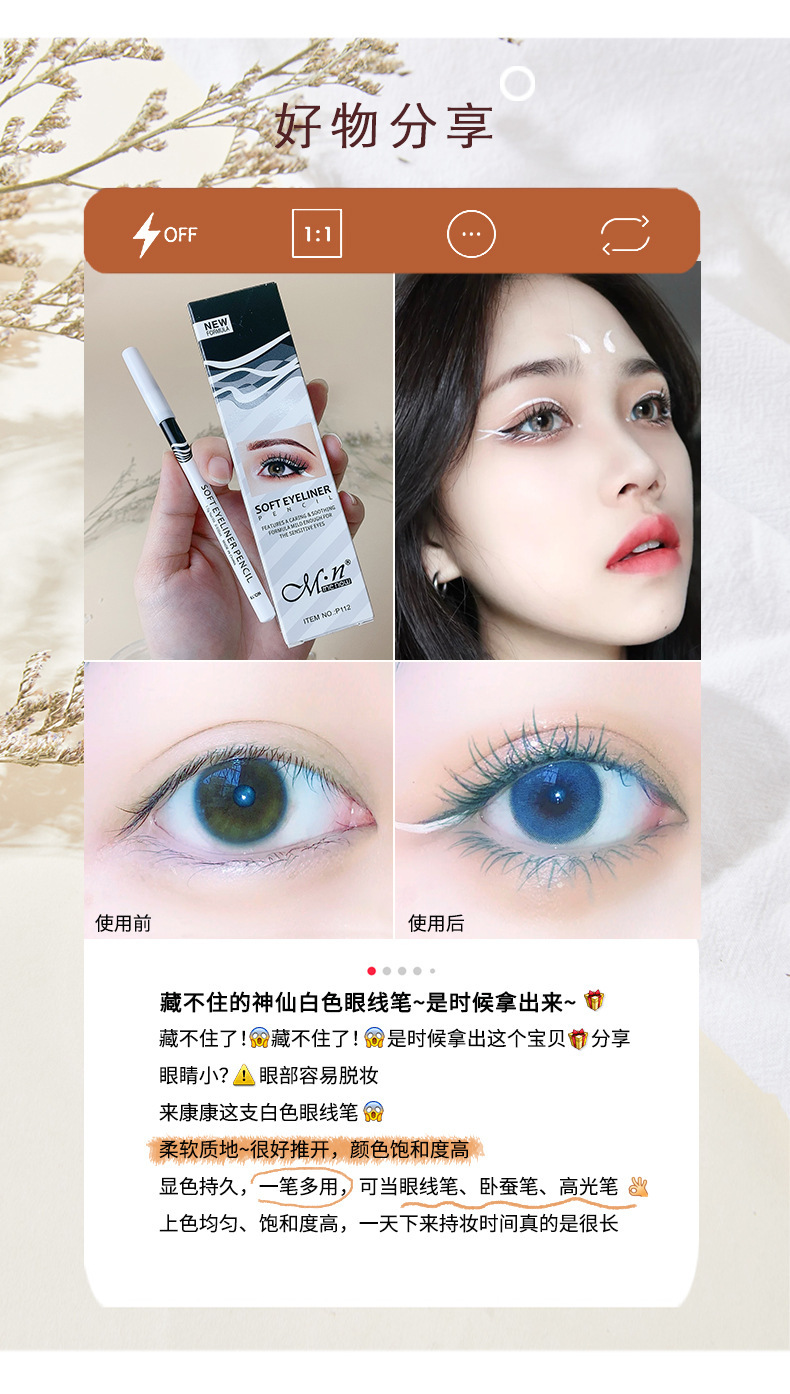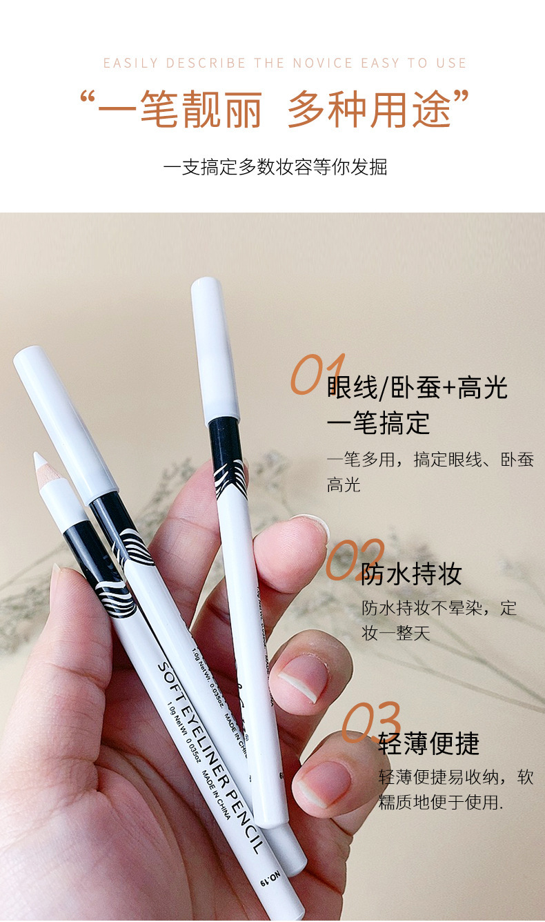 美諾純白色アイライナーつや消しテープ防水無影極細頭内アイライナーまぶた下から臥蚕ペン