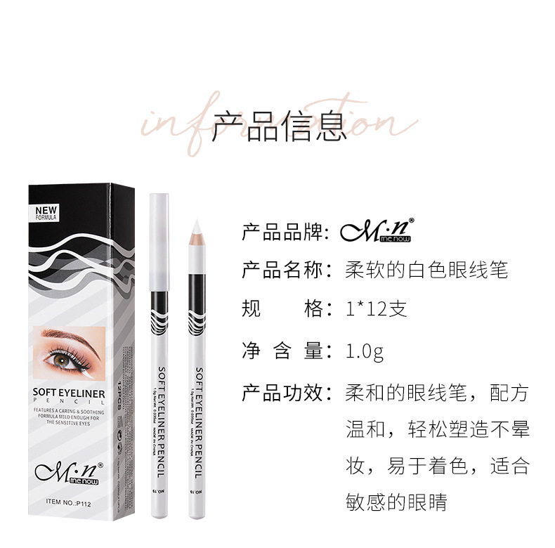 外貿MENOW美诺MNカイコ(まゆげの下の小じわ)用純白マットアイライナー、美容ペン、防水、にじまない、P112