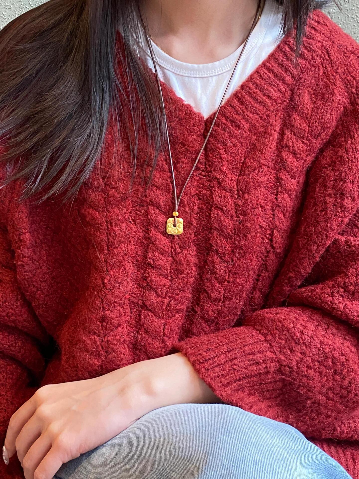 吉言ペンダント福禄寿喜新中国式三福ネックレス小四角高級感国風復古百合毛衣チェーン