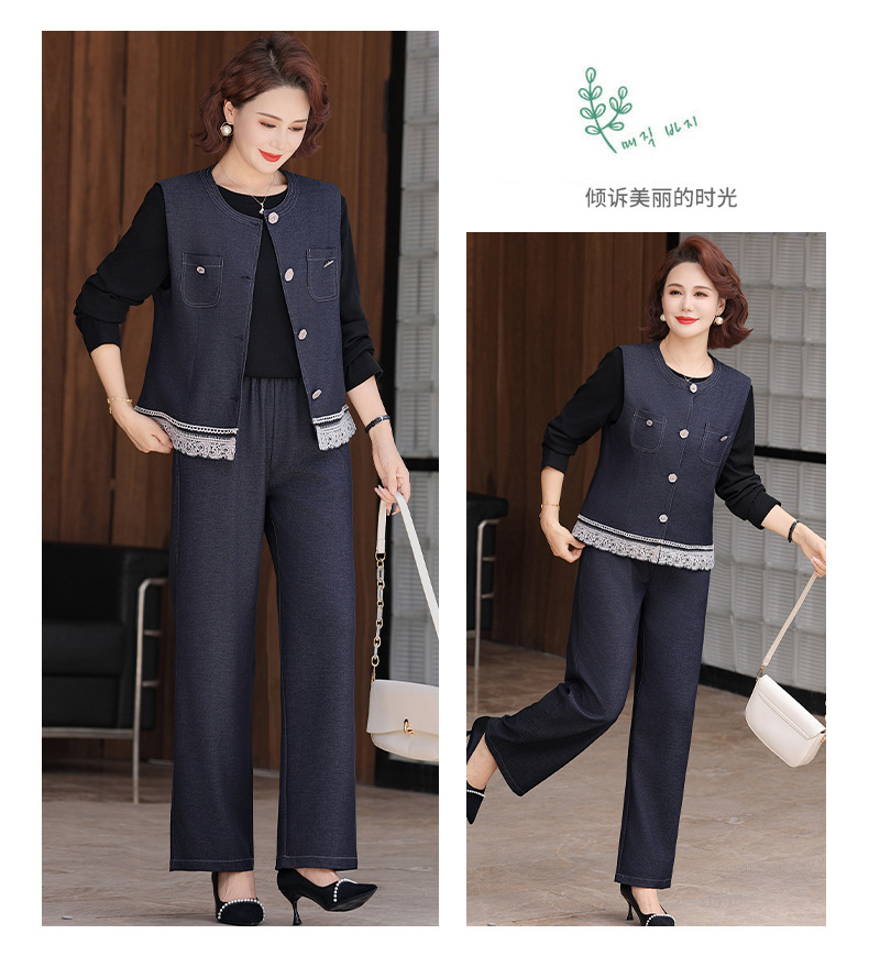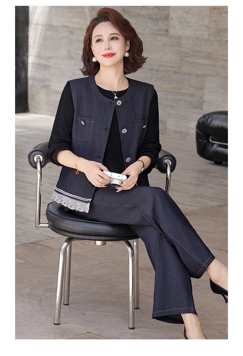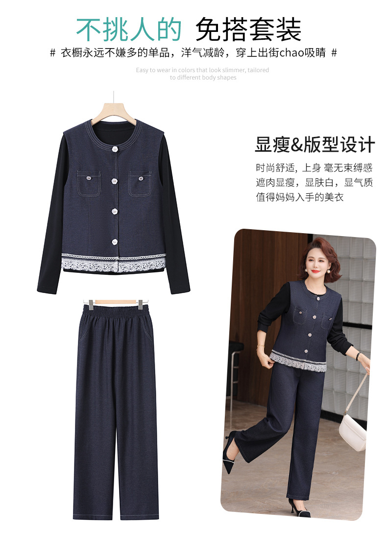 妈妈装秋季洋气牛仔外套秋季新款2025时尚套装气质减龄百搭两件套
