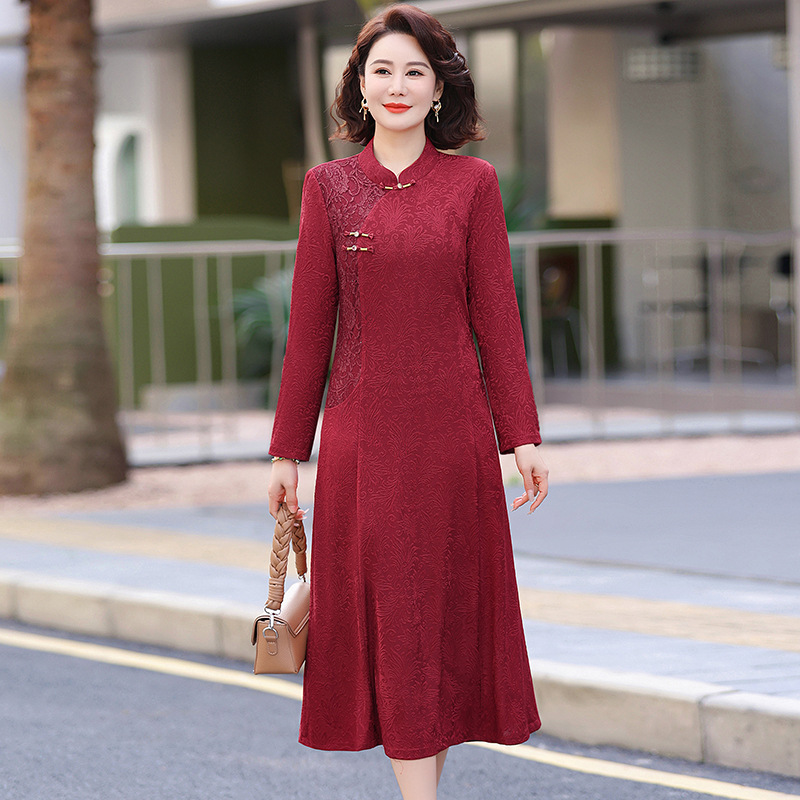 母の服秋の中国風のドレス新しい国民風中年ファッショナブルな長袖スリムで多用途なスカート