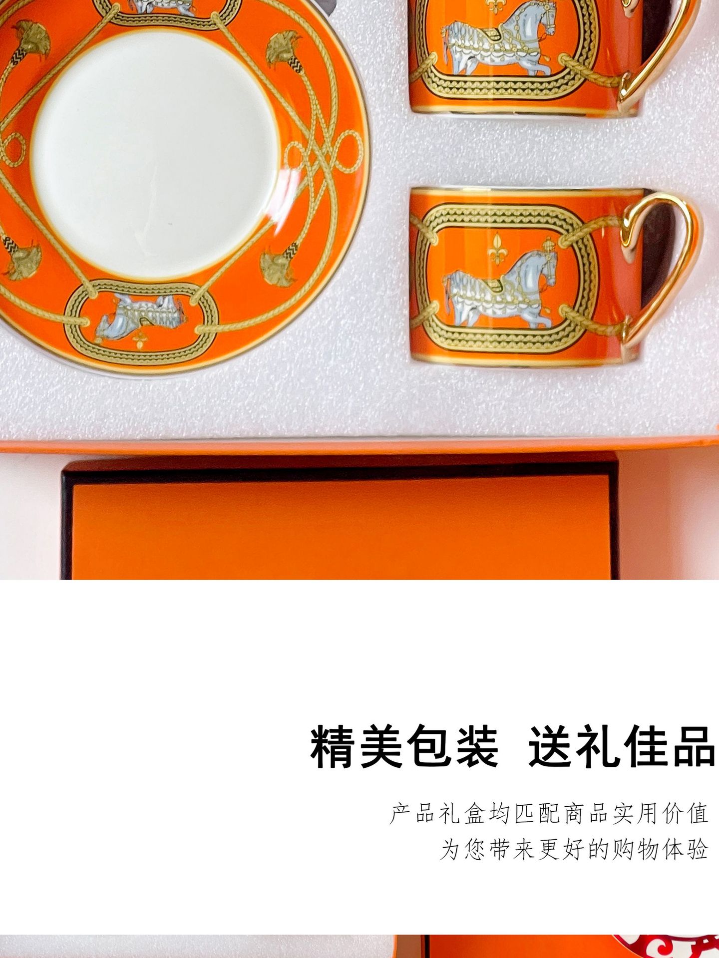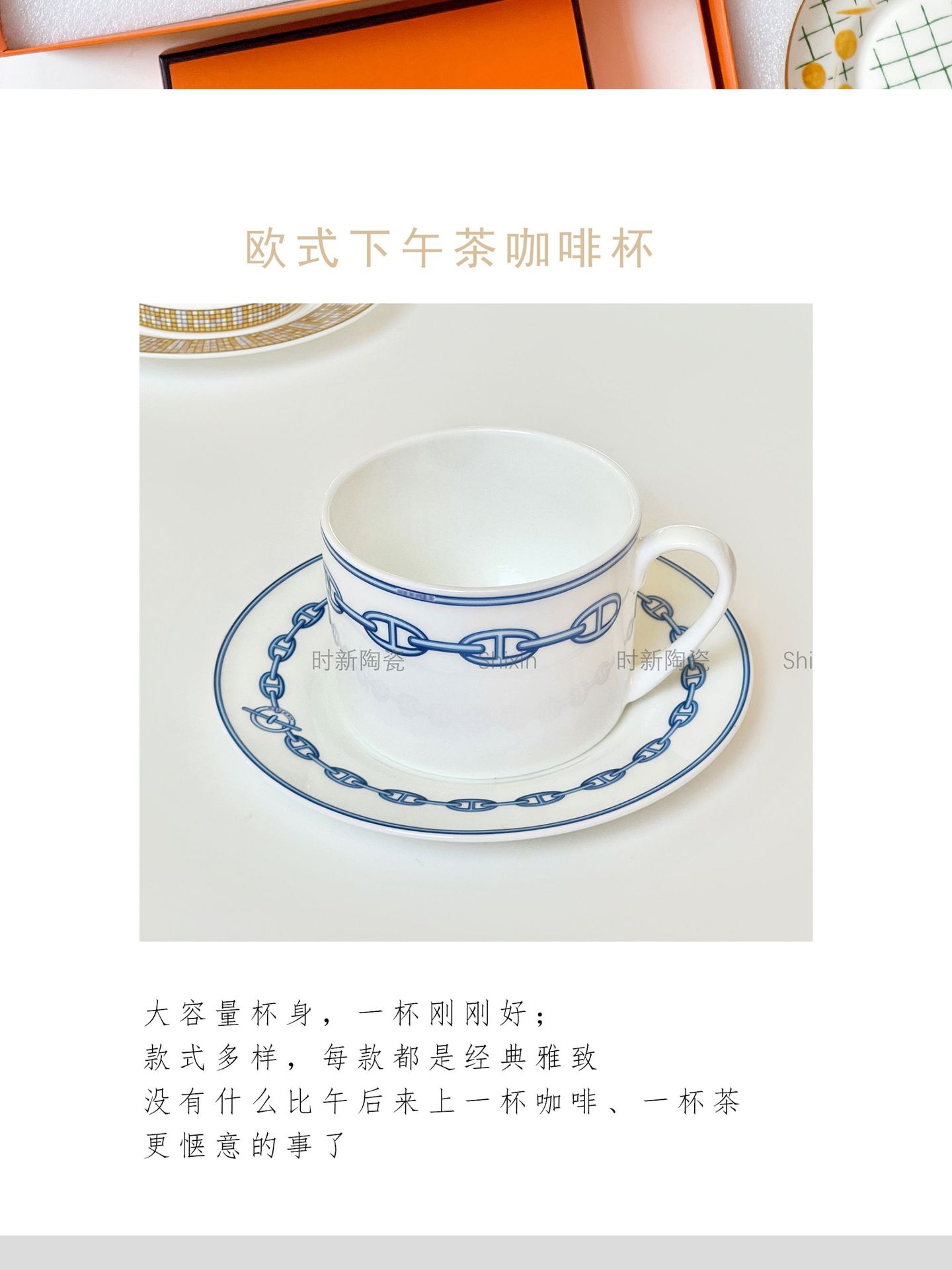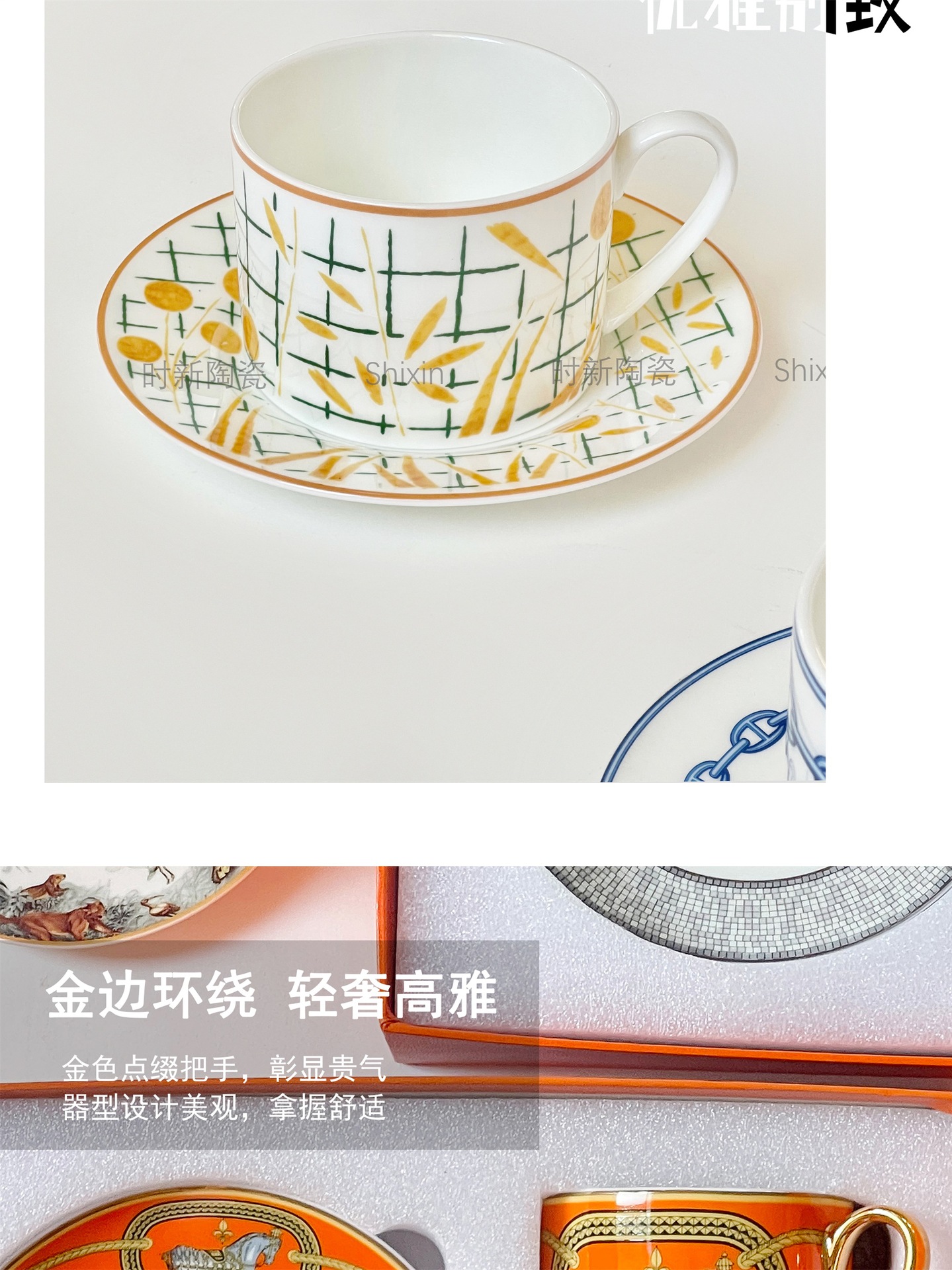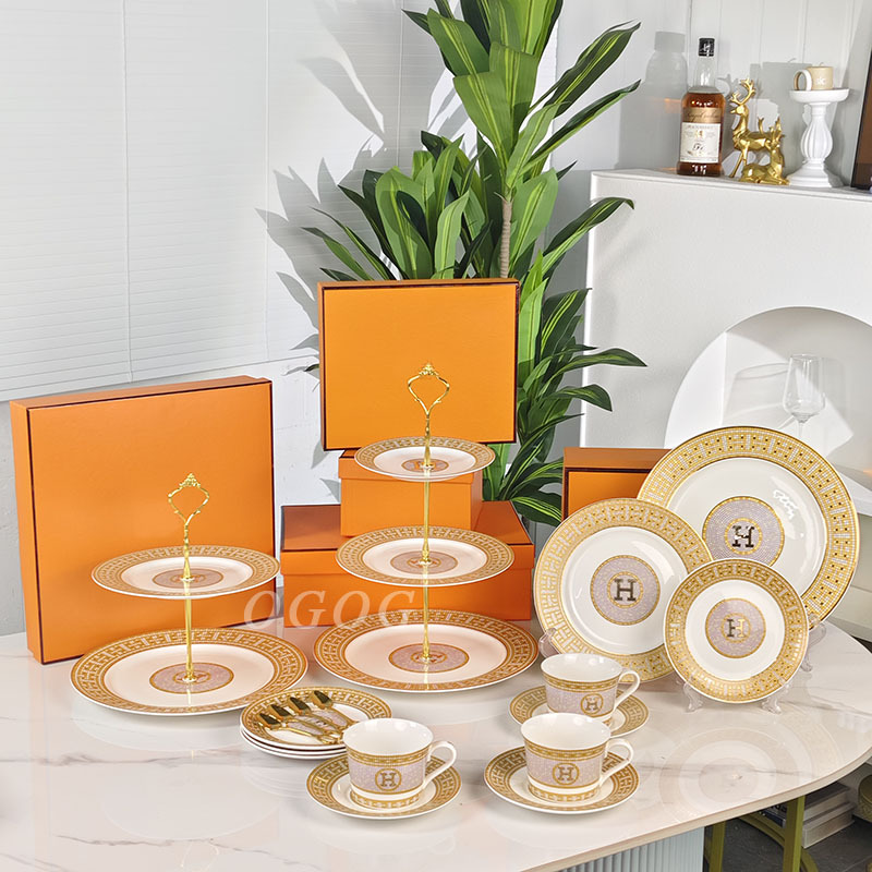 欧格跨境骨瓷H标系列欧式轻奢西餐盘点心碟串盘咖啡杯碟乔迁送礼