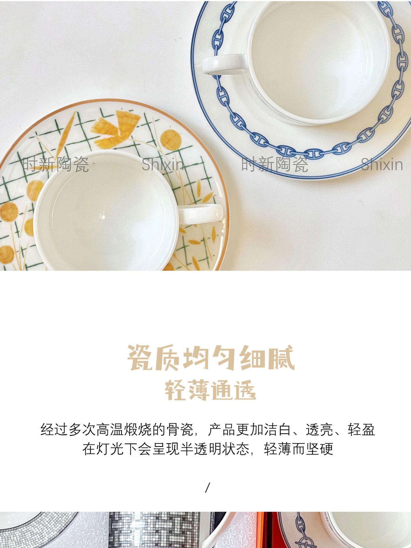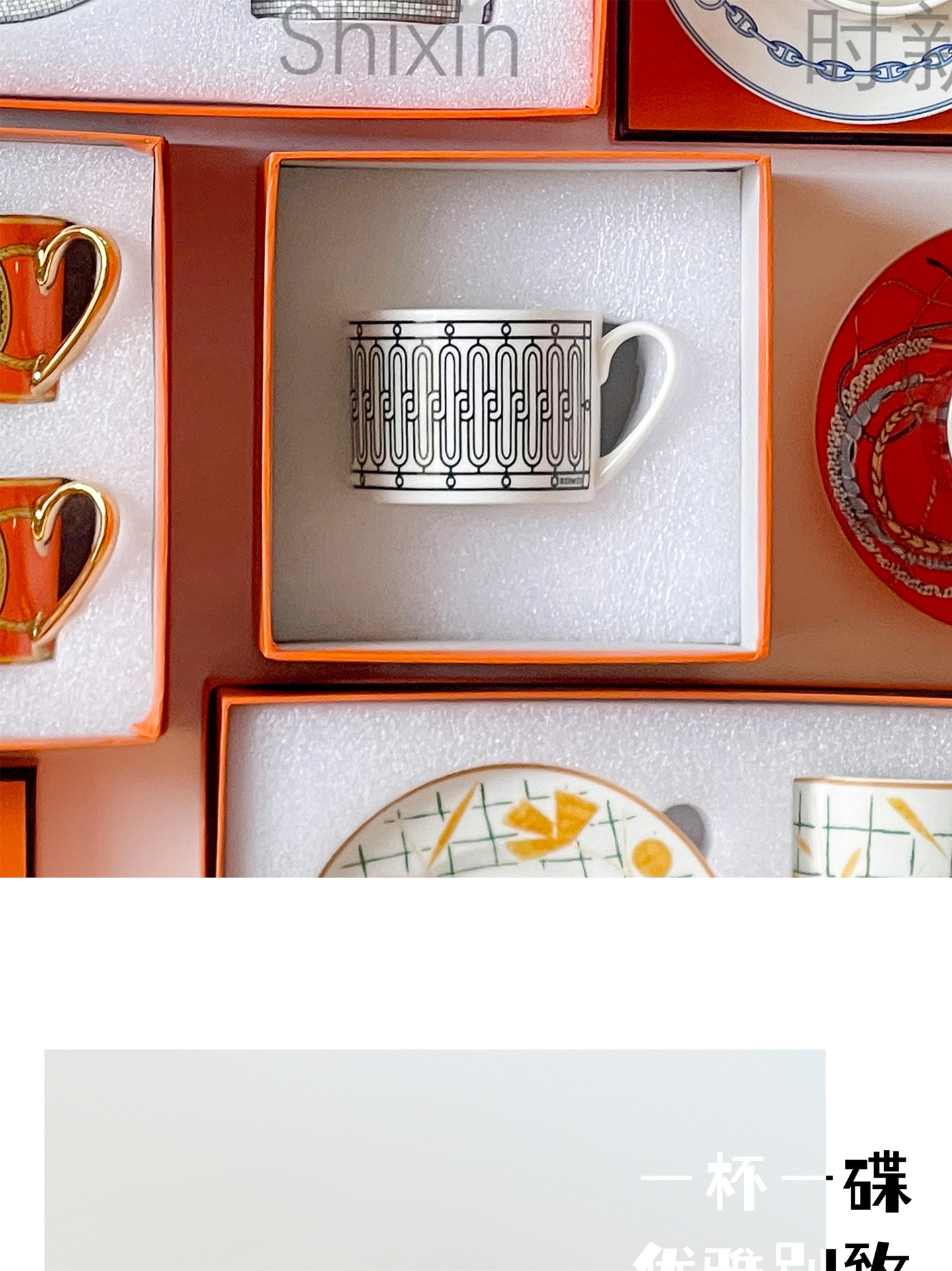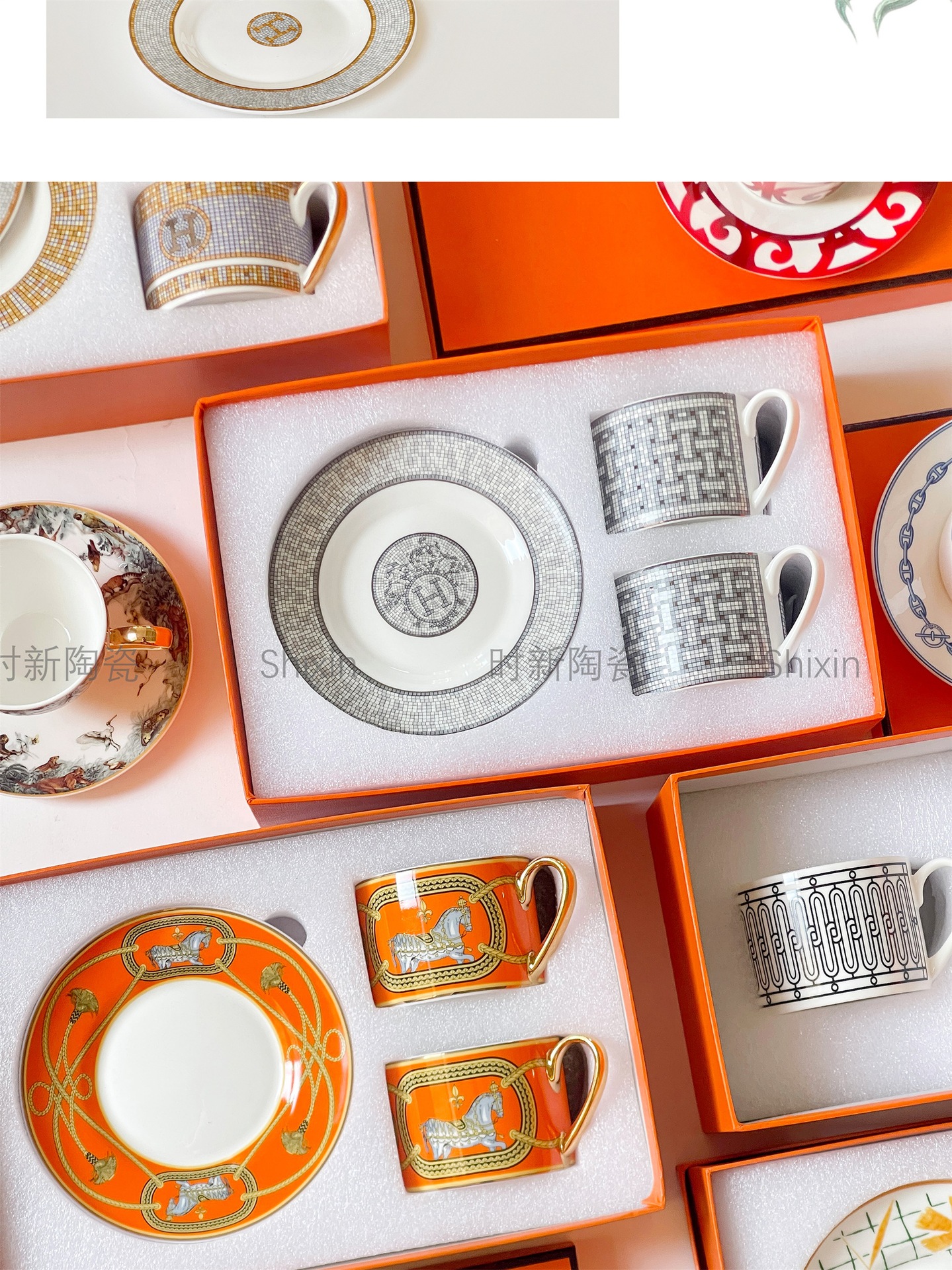 欧格跨境骨瓷H标系列欧式轻奢西餐盘点心碟串盘咖啡杯碟乔迁送礼
