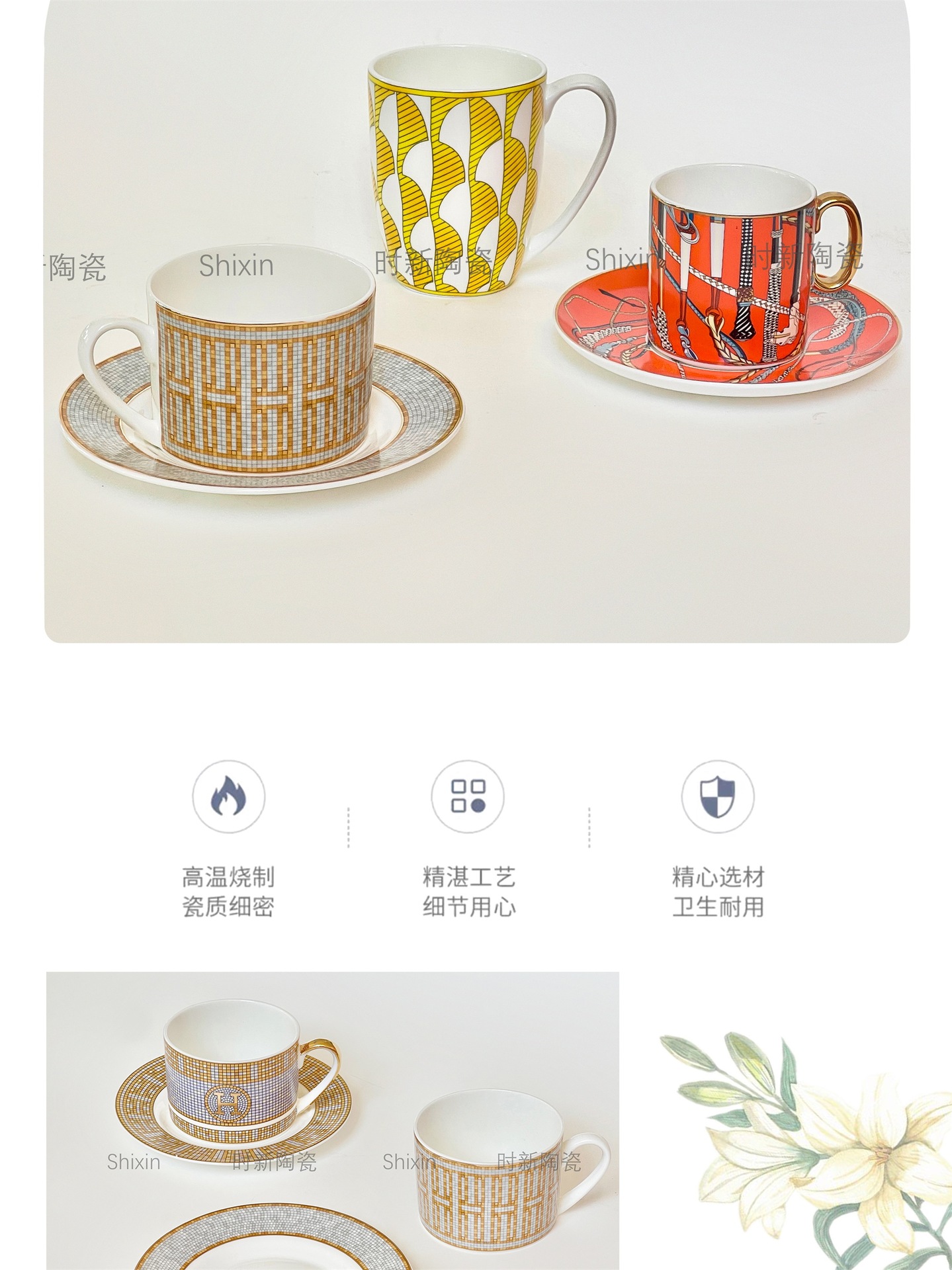 メーカー直送H家コーヒーカップ&ソーサーセット、ボーンチャイナ製アフタヌーンティーセット、紅茶カップ、軽贅沢ダブルカップ&ソーサー、結婚祝い