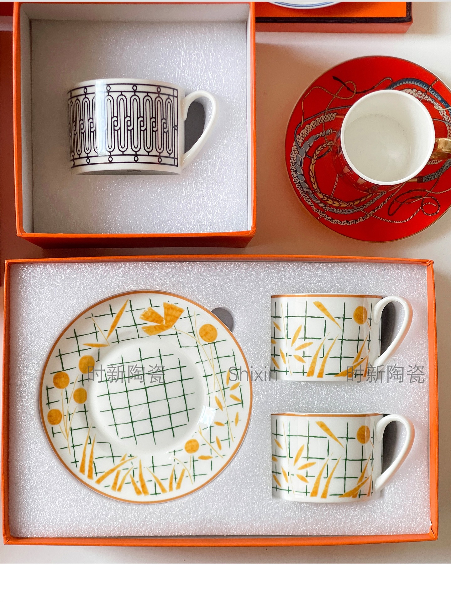 H家越境濃縮カップセット6杯6皿12個の個性シンプルな家庭用アフタヌーンティーコーヒーカップのギフトボックス