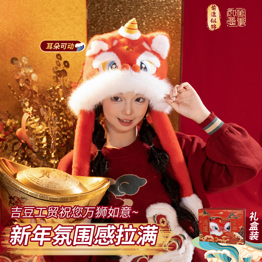 帽子 秋冬用 女性用 暖かい 毛皮製 獅子帽子 新年帽子 赤い耳が動く帽子 かわいい漫画帽子