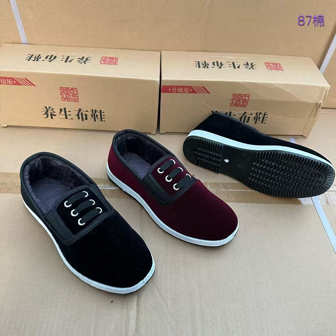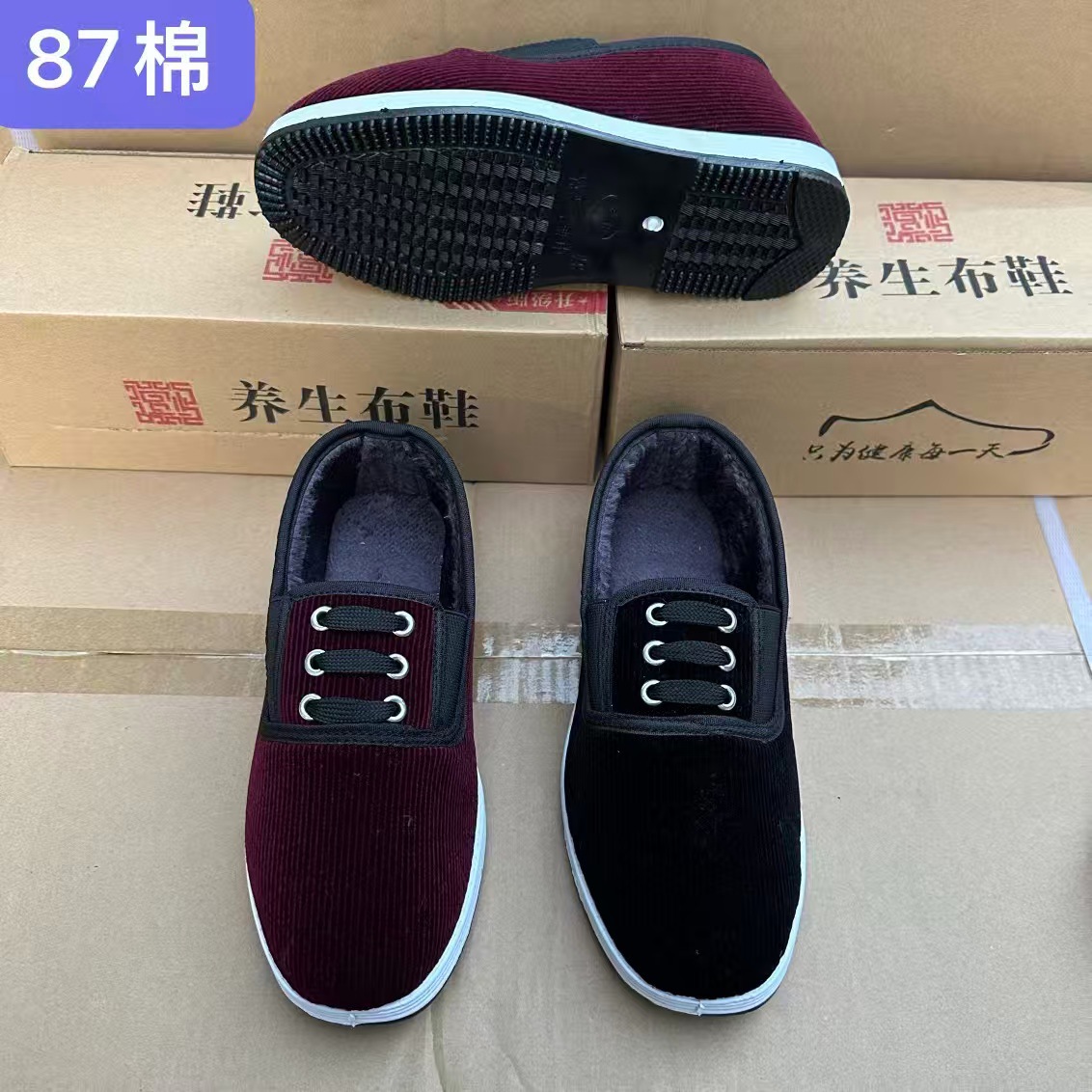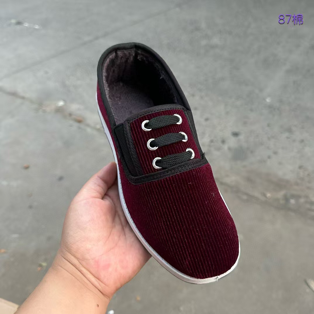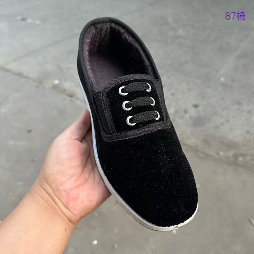 冬の新作老北京綿靴、男女兼用、ベルベット生地に裏起毛、スリッポンタイプの昔ながらの綿靴、暖かい作業靴