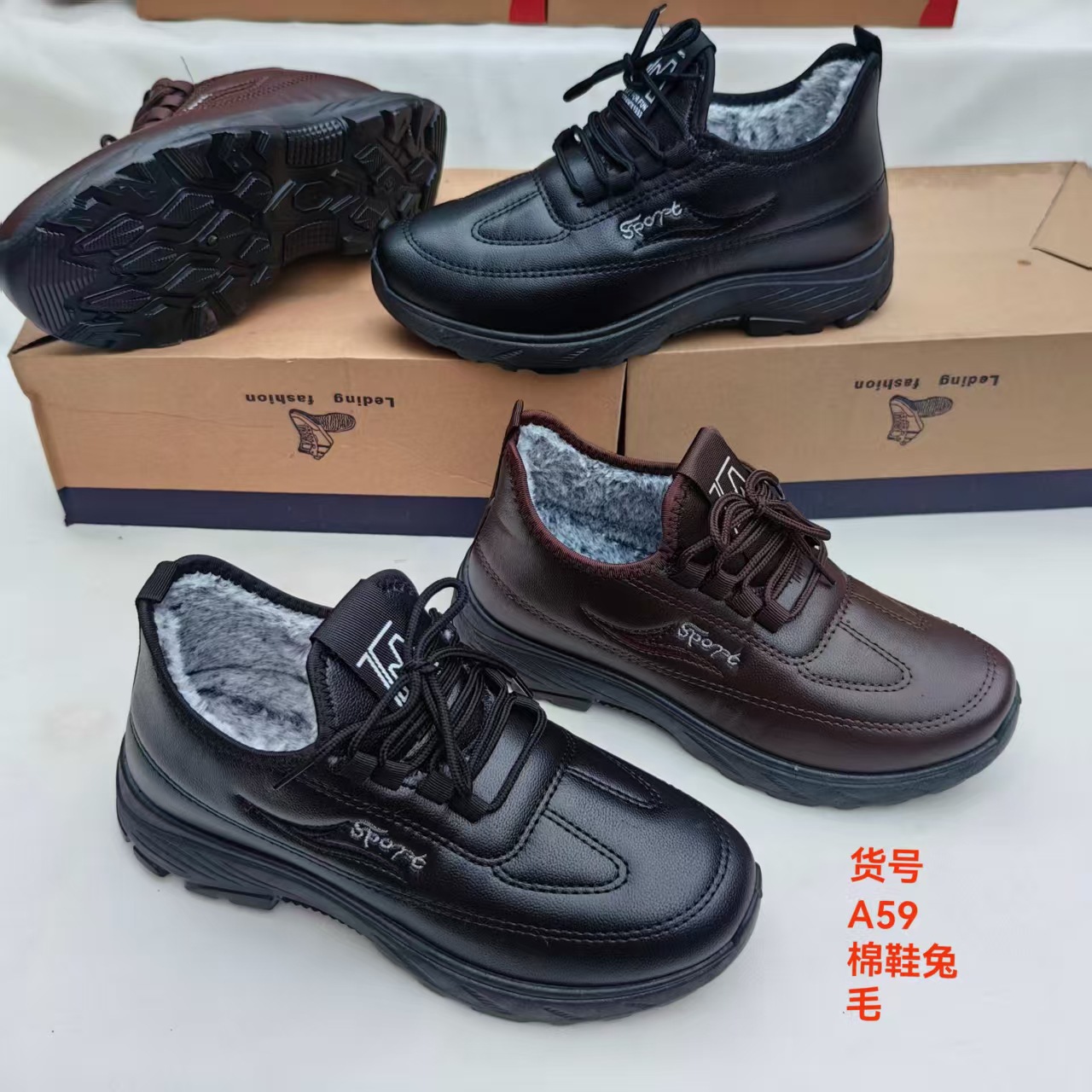 冬季新款老北京棉鞋男皮面兔毛男式休闲棉鞋保暖中老年爸爸棉鞋男