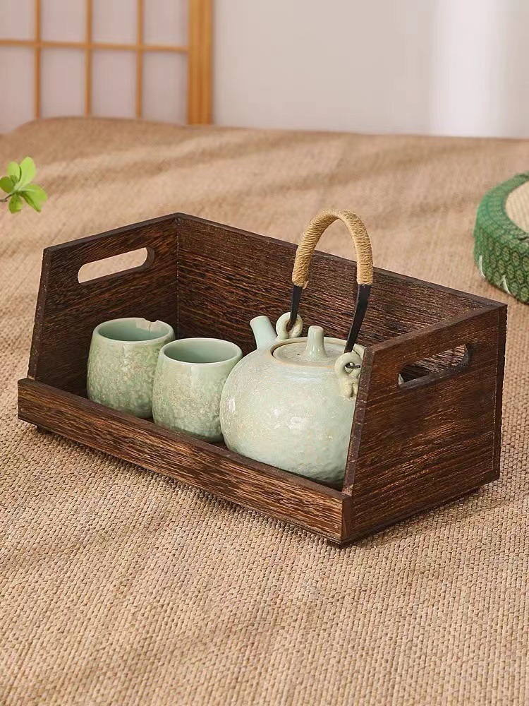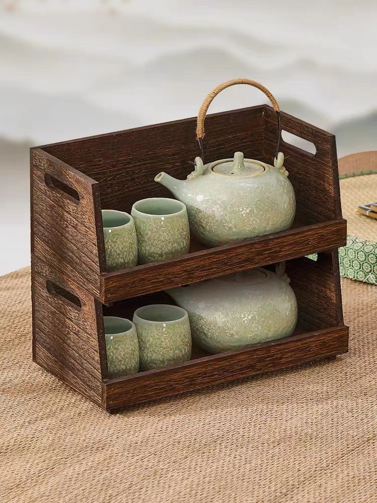桐材デスクトップティーカップホルダーティーポットティーセット収納ラック化粧品スナック雑貨収納ボックス茶倉庫