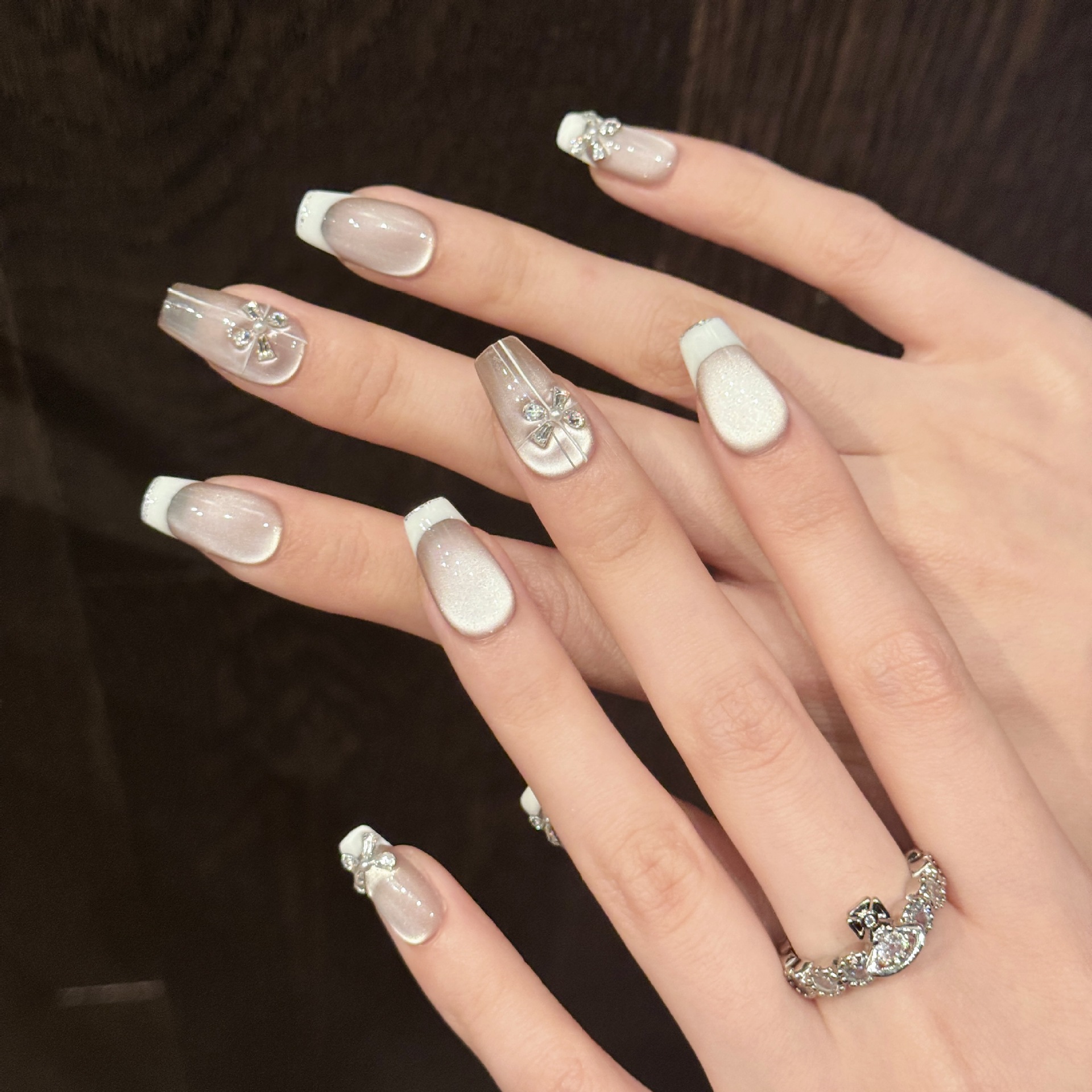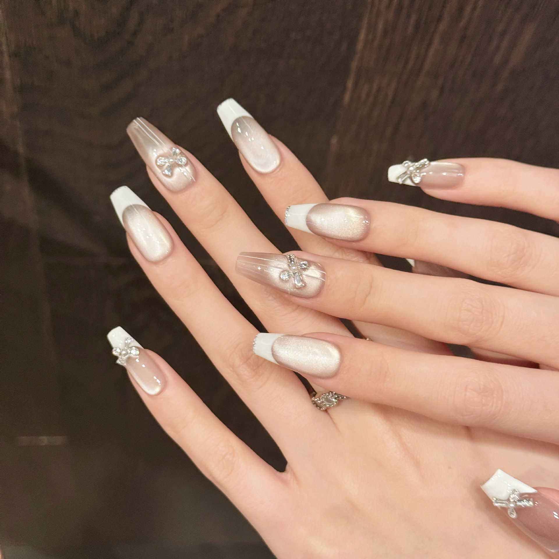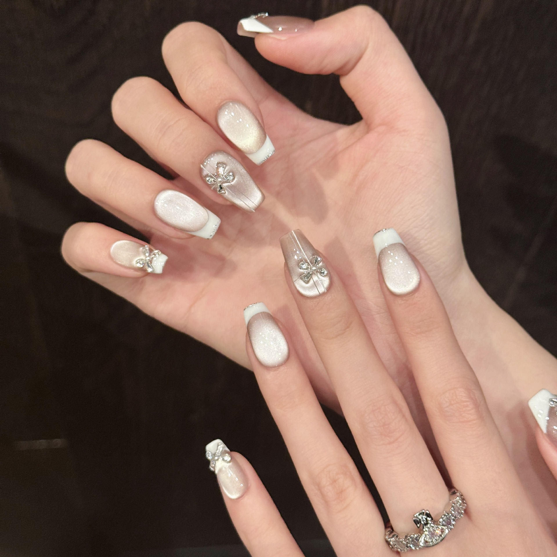 芸禾【冷蝶】清冷感蝶ガラス珠猫眼白月光爆閃偽爪純手装甲