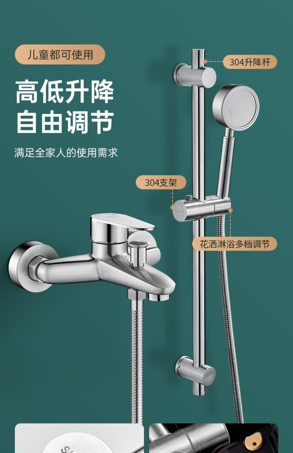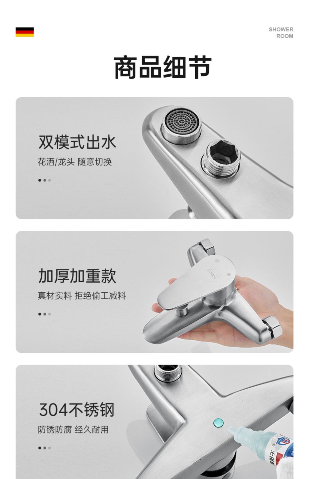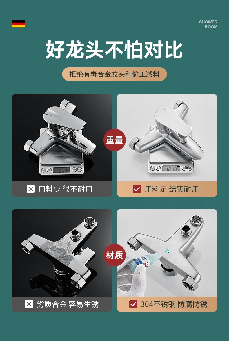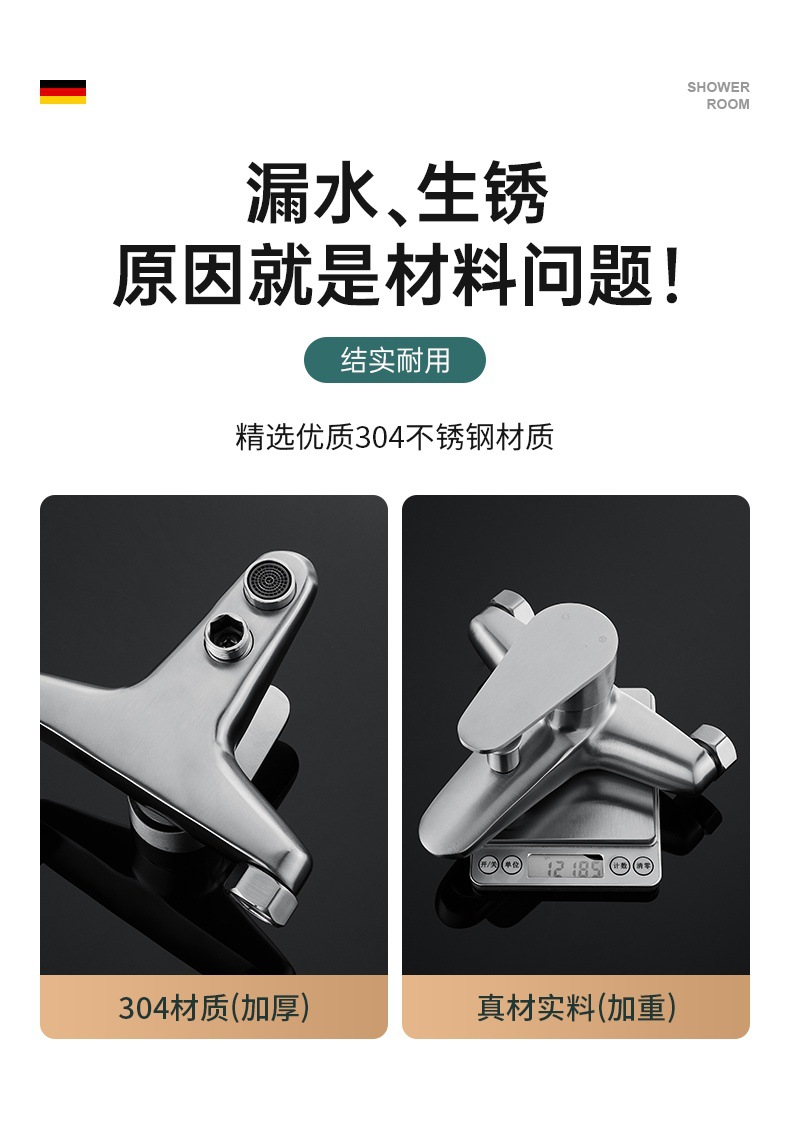 仕様 304 サイロ トリプル シャワー蛇口,304シャワー水栓+304ブースターハンドスプレーセット,304シャワー水栓+4速止水ハンドシャワーセット,304シャワー水栓+角型3速スーパーチャージャーハンドスプレーセット