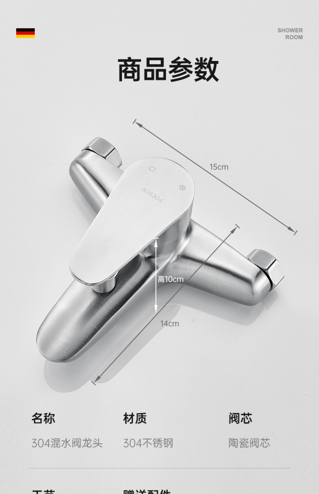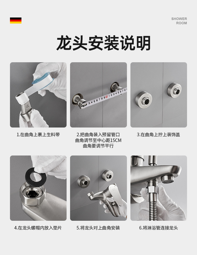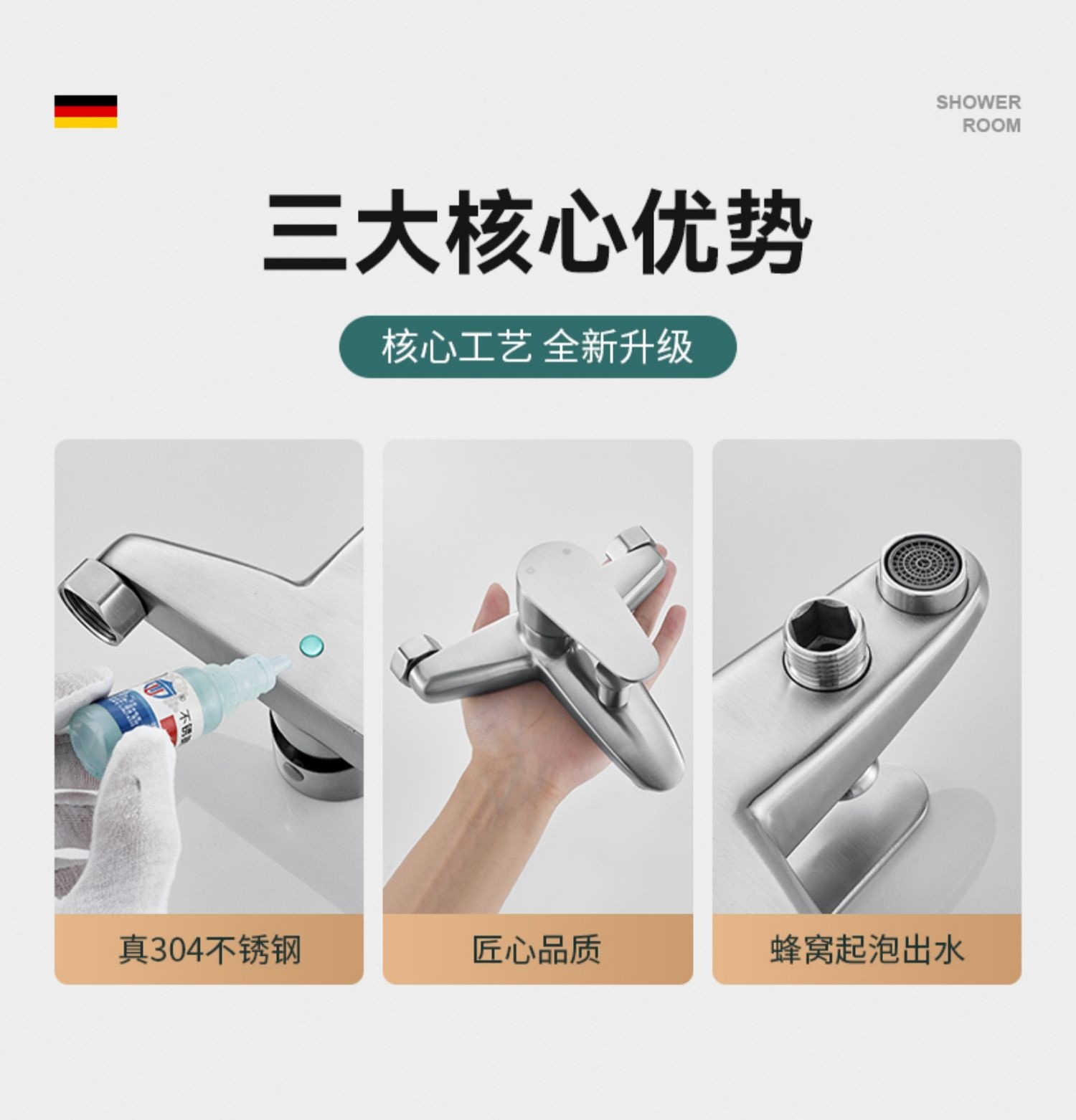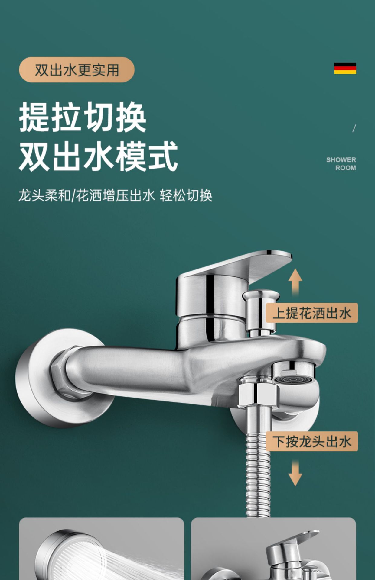 仕様 304 サイロ トリプル シャワー蛇口,304シャワー水栓+304ブースターハンドスプレーセット,304シャワー水栓+4速止水ハンドシャワーセット,304シャワー水栓+角型3速スーパーチャージャーハンドスプレーセット