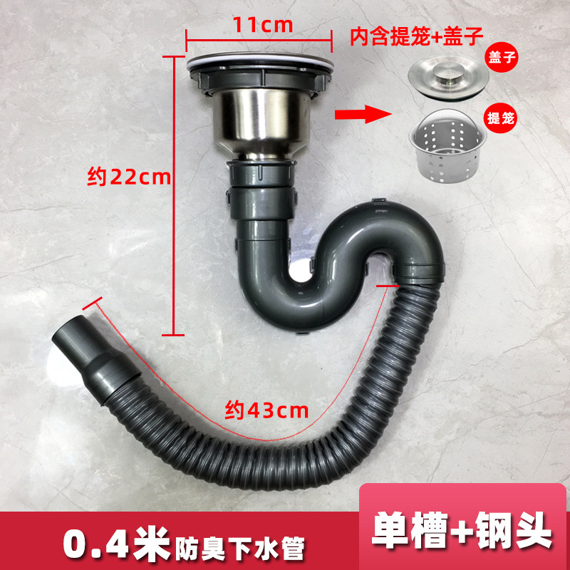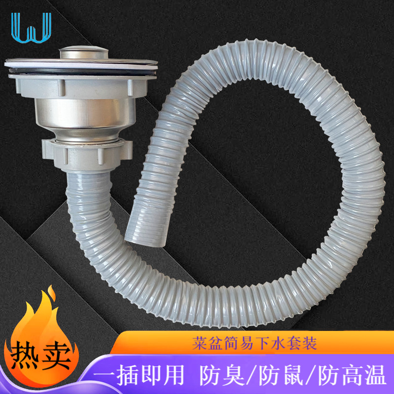 菜盆110型下水器厨房不锈钢菜盆提篮防烫耐高温钢丝管排水管套装