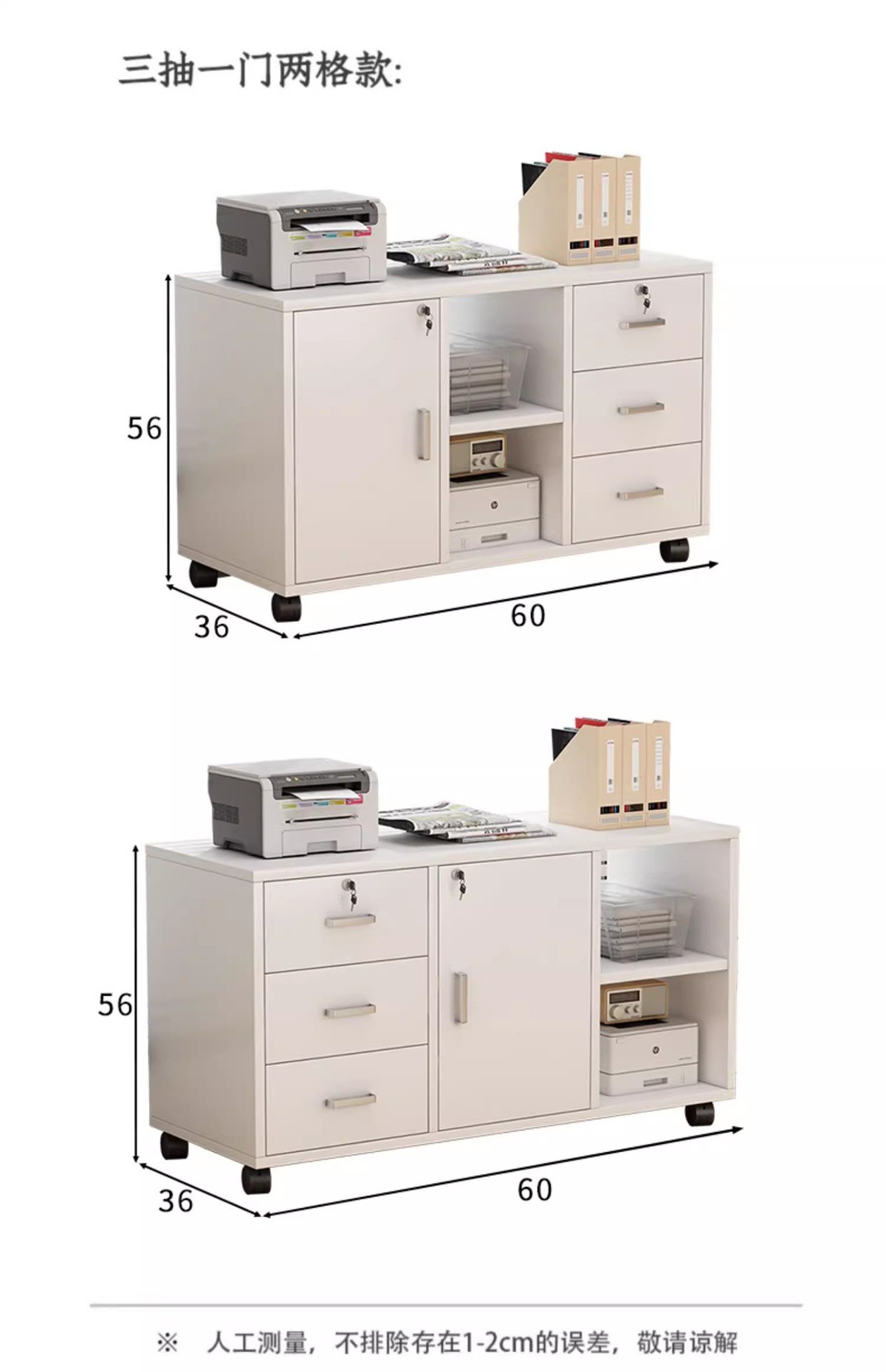 文件柜办公室桌下资料柜带锁储物柜抽屉柜打印机柜桌边柜落地矮柜