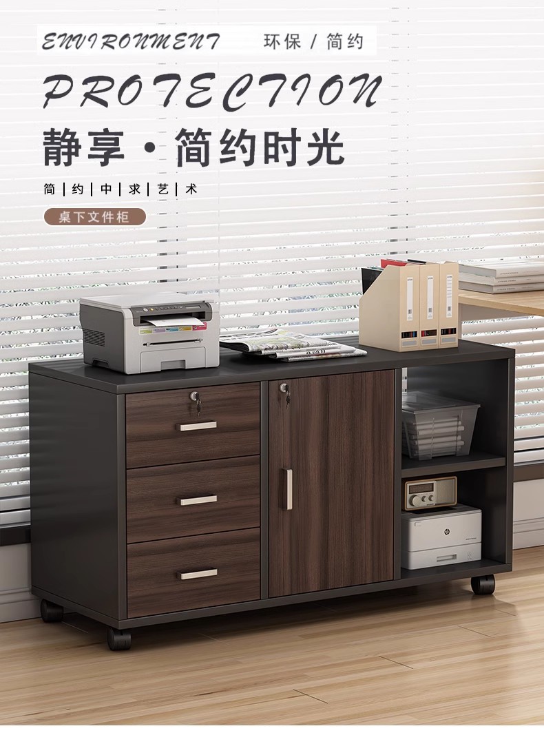 文件柜落地办公室带锁资料柜储物柜打印机柜桌下抽屉柜可移动矮柜