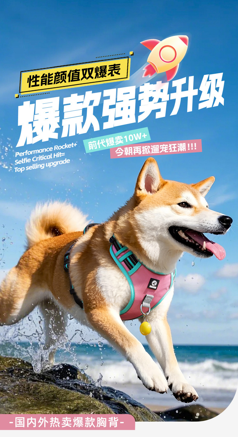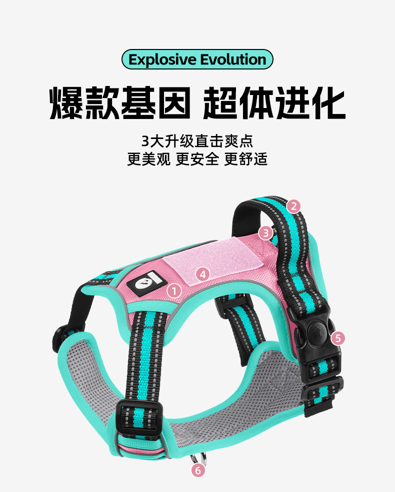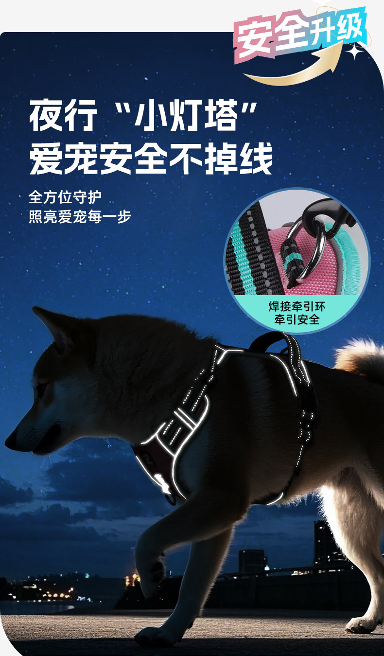 跨境宠物牵引绳防爆冲大狗胸背中大型犬狗狗背带防撕咬耐磨狗脖圈