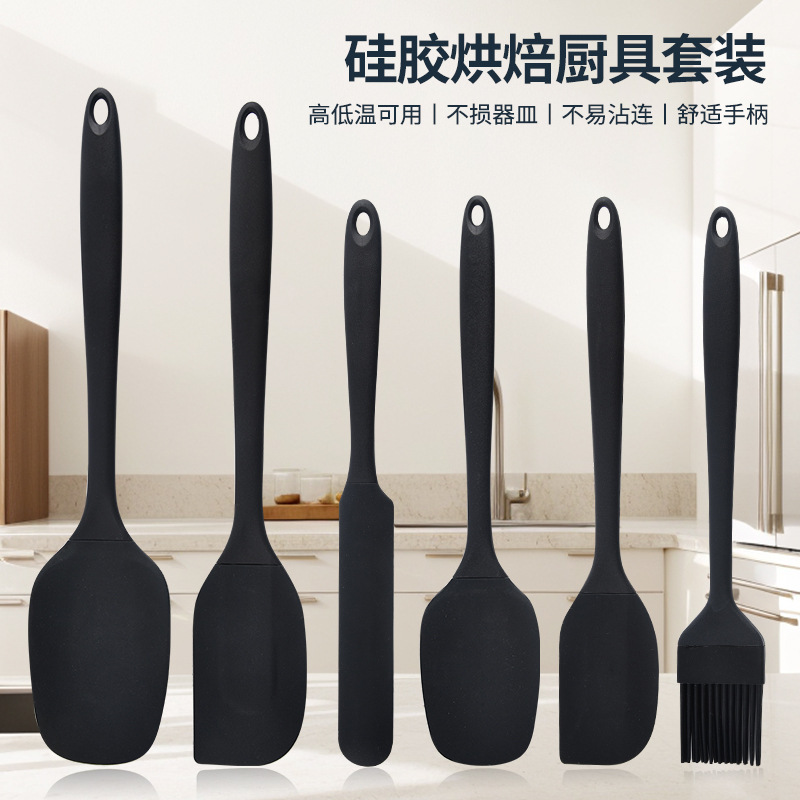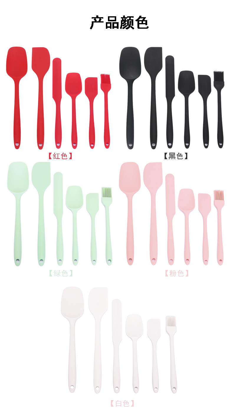 一体式硅胶刮刀6件套烘焙套装耐高温蛋糕抹刀奶油刀油刷Spatula