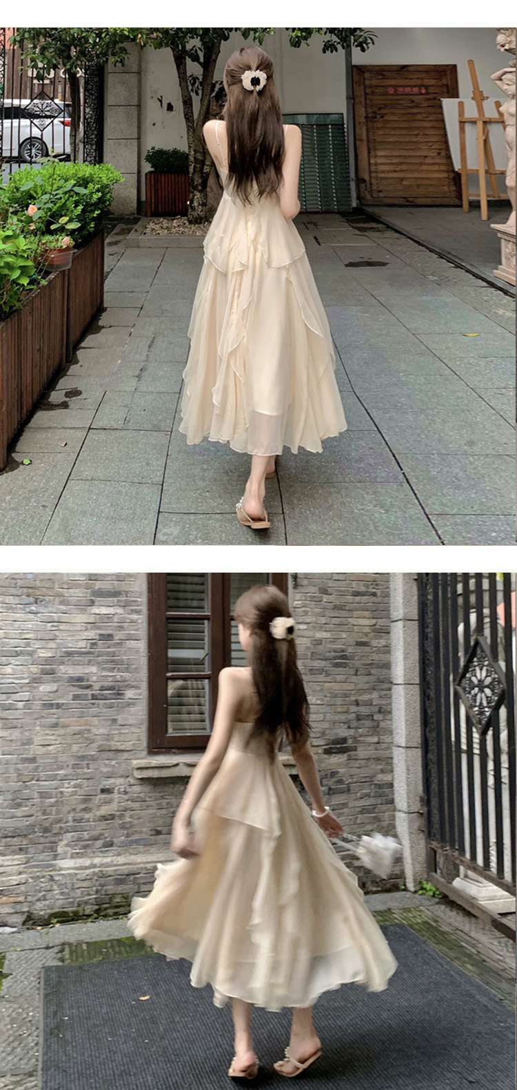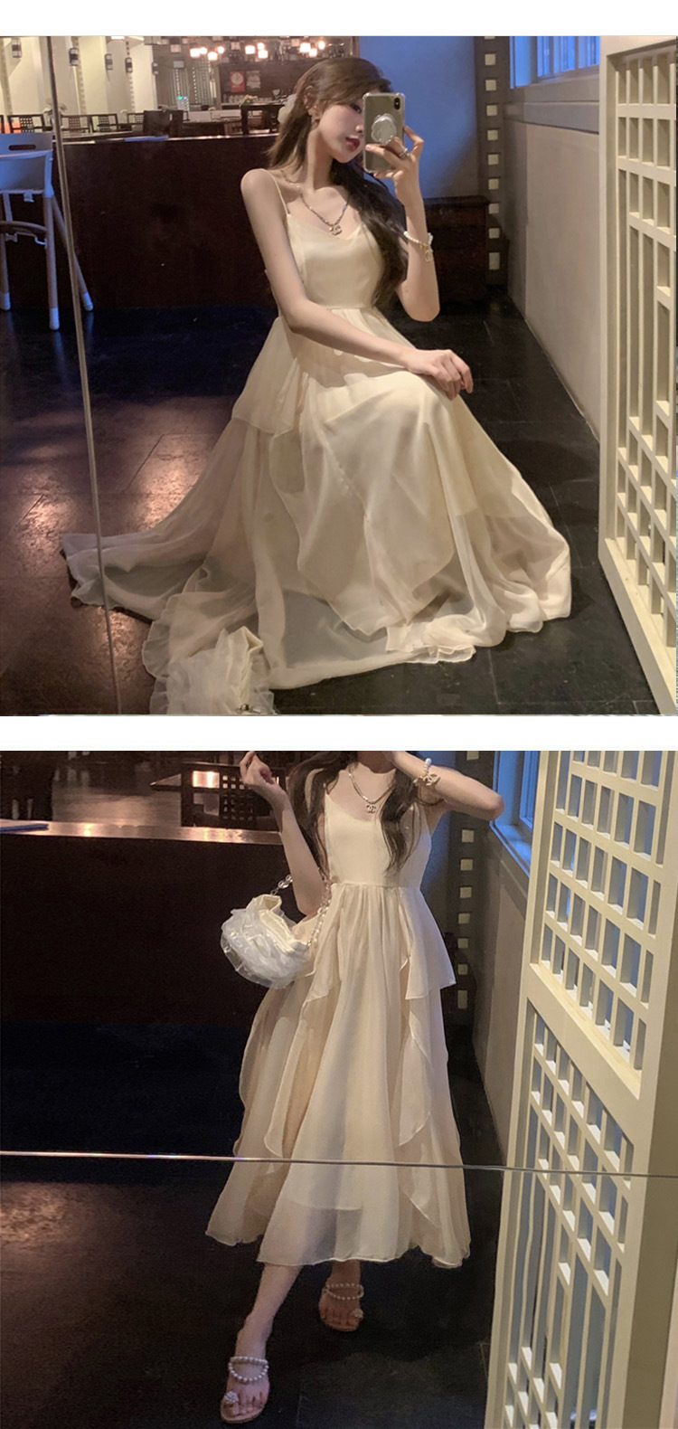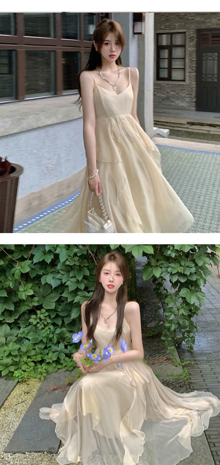 (オリジナル品質) 砕花ストラップワンピース2025新型夏清純系デート着ロングスカート女