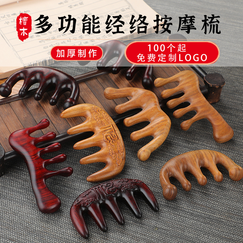 メーカー天然緑白檀櫛頭 5 歯プレス経絡櫛頭皮と首白檀マッサージ櫛卸売
