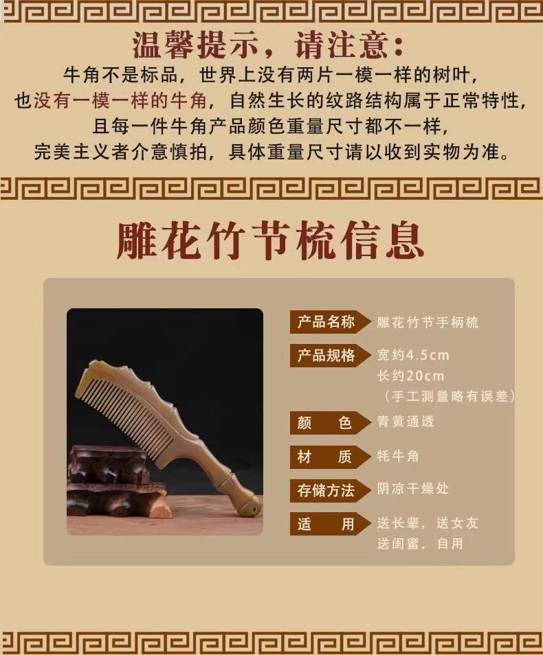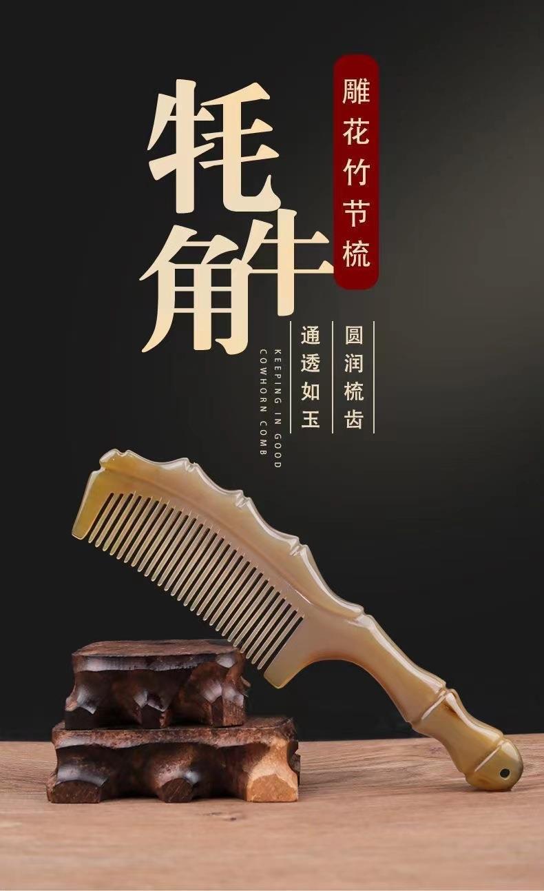 メーカー卸売り純天然ヤク角櫛長髪マッサージ竹節穴ハンドル静電気防止櫛創意包装女
