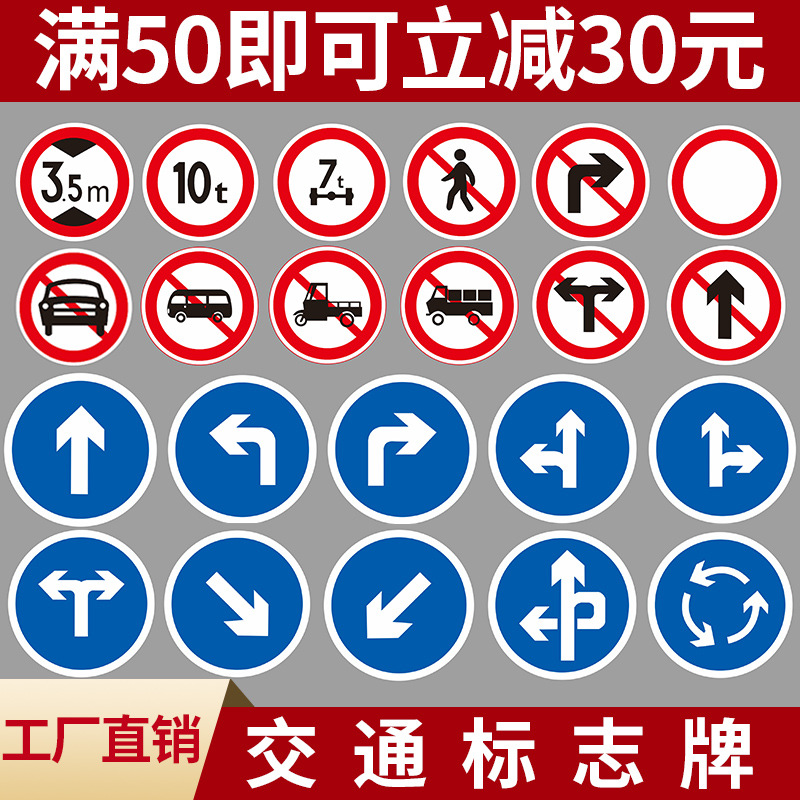 交通安全标志牌限速圆形标识牌限高指示牌道路禁止停车慢加厚铝板