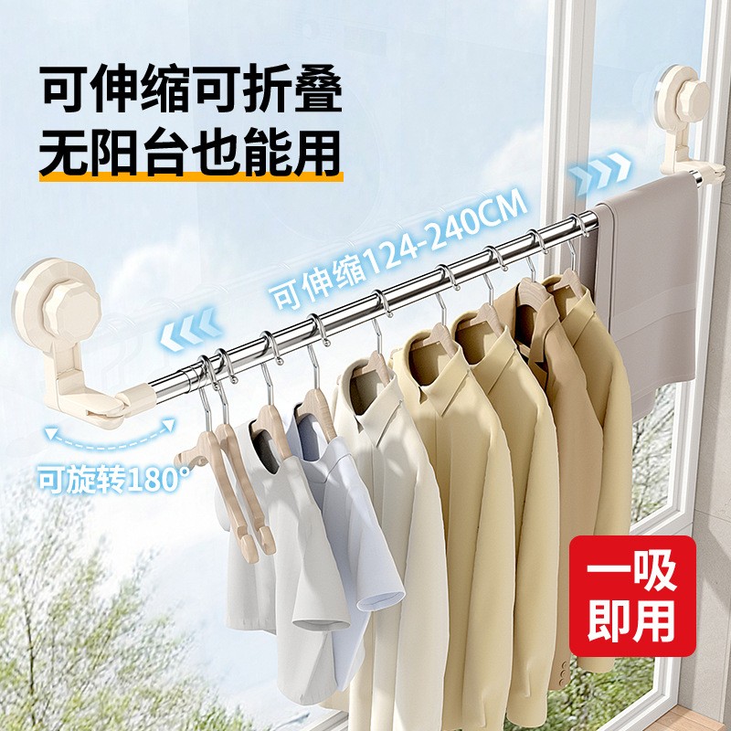 吸盤式ステンレス伸縮式物干しラック、家庭用屋内バルコニー窓、パンチングなしの布団乾燥用物干しロッド