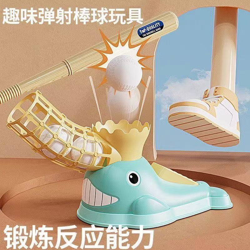 子供のおもちゃ趣味クジラ野球発射機足踏み玩具セット親子室内ゲームアウトドアスポーツ