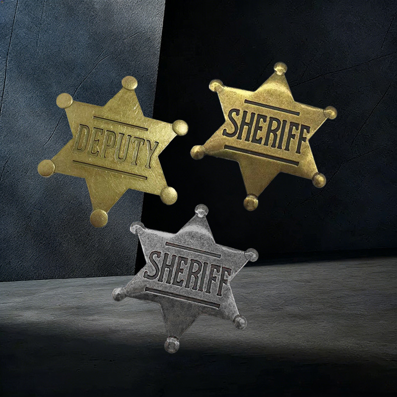 国境を越えて人気のクリスマスブローチ、アメリカ保安官六芒星ピンバッジ「SHERIFF」名誉、創造的で精巧なバッジ