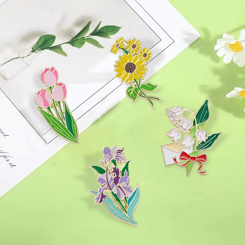 国境を越えた欧米植物花卉ブローチアイリス鈴蘭胸花バッジ田園風緑植ヒマワリアクセサリー