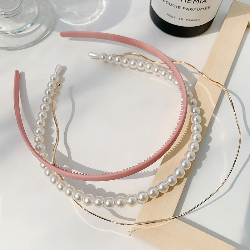 シンプルな髪のカチューシャの細い3つのセットの真珠のつや消しの波の頭のキャンディーの色のシンプルな百合の髪飾りの女性の髪飾り