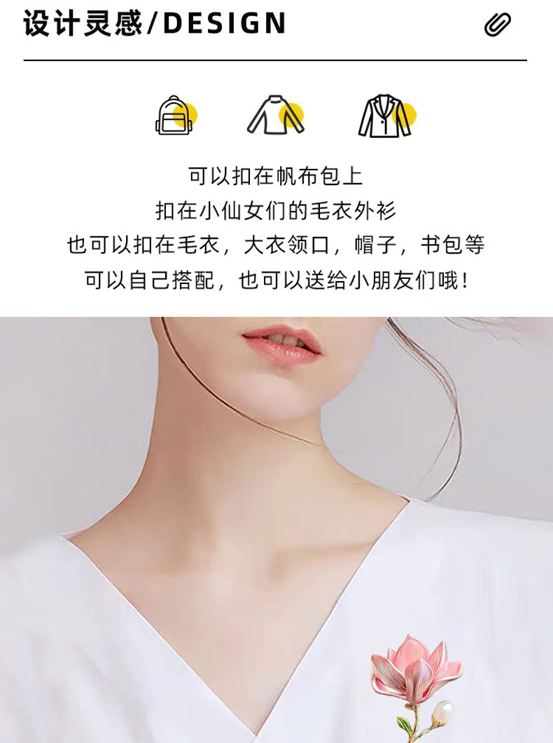 复古国风淡雅精致玉兰花胸针新款时尚气质花朵别针旗汉服胸花配饰